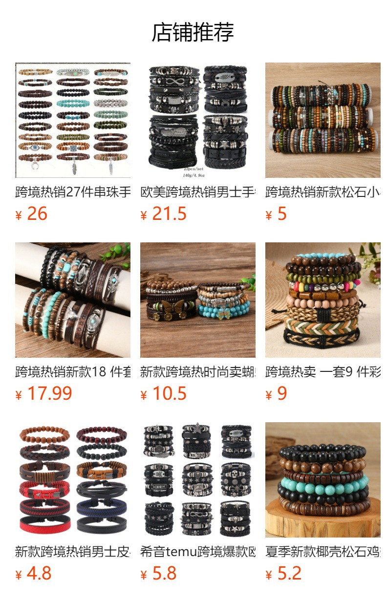 跨境热销爆款12件套叠戴个性男士串珠手串皮手链工厂现货批发