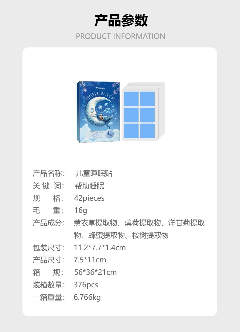Wiieey儿童睡眠贴系列温和呵护儿童夜间安稳睡眠质量睡眠护理贴片
