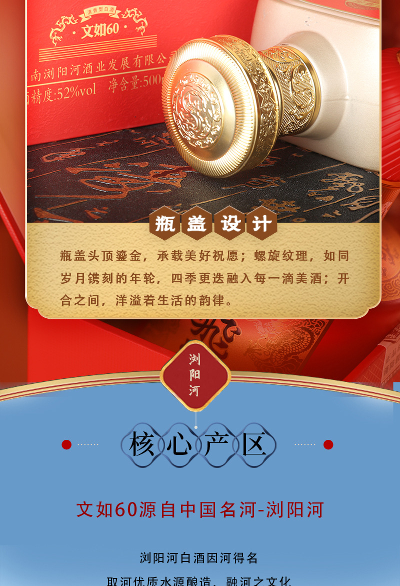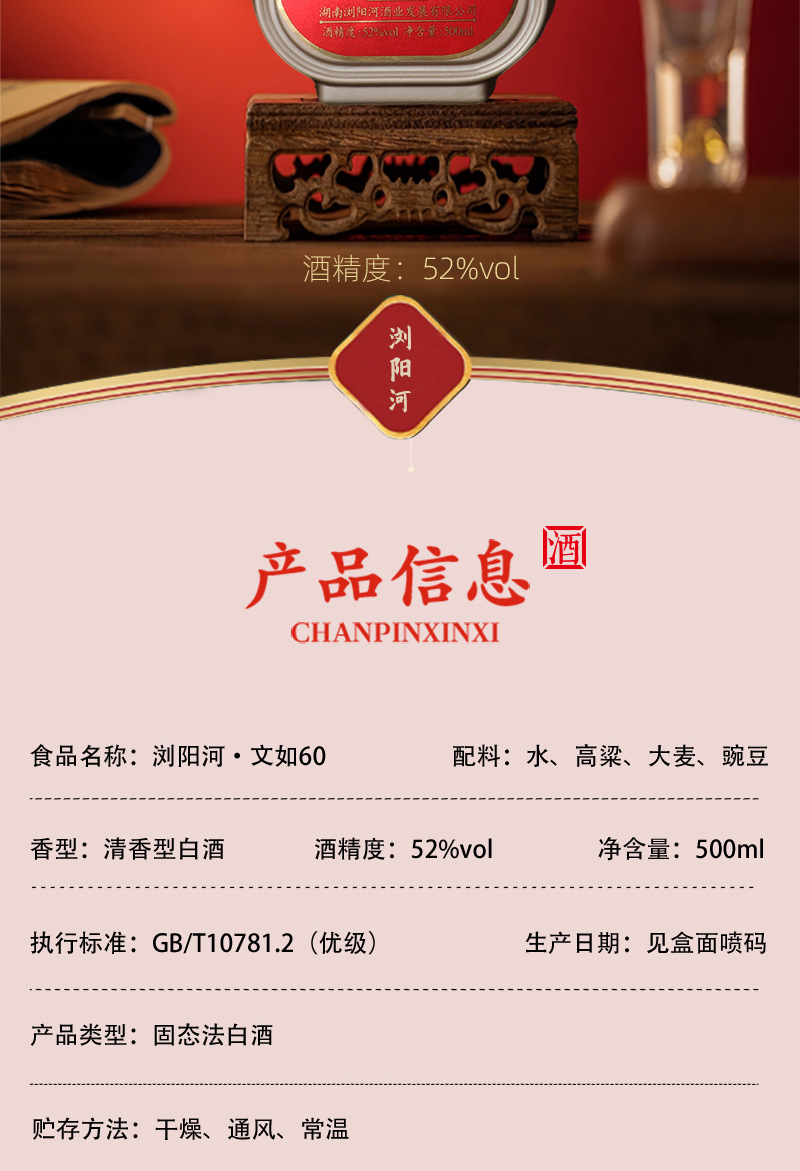 厂家批发浏阳河文如60清香型白酒52度六瓶高档礼盒装过节送礼白酒
