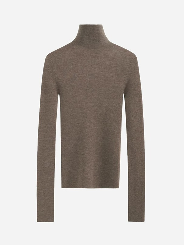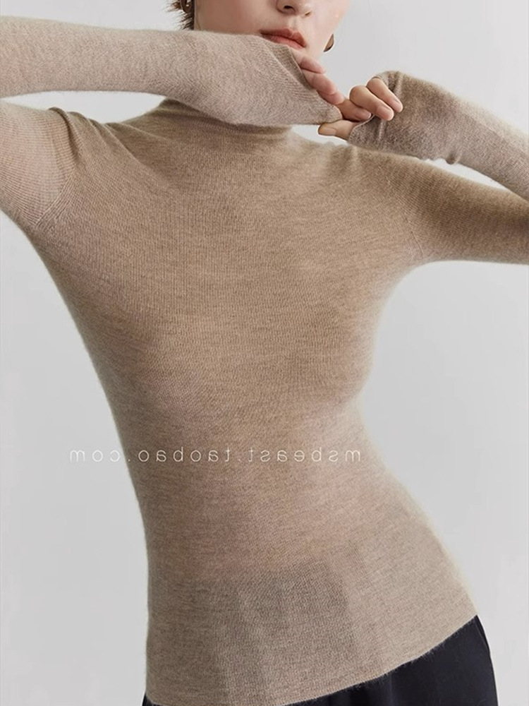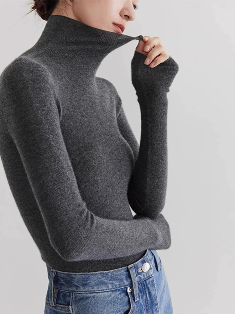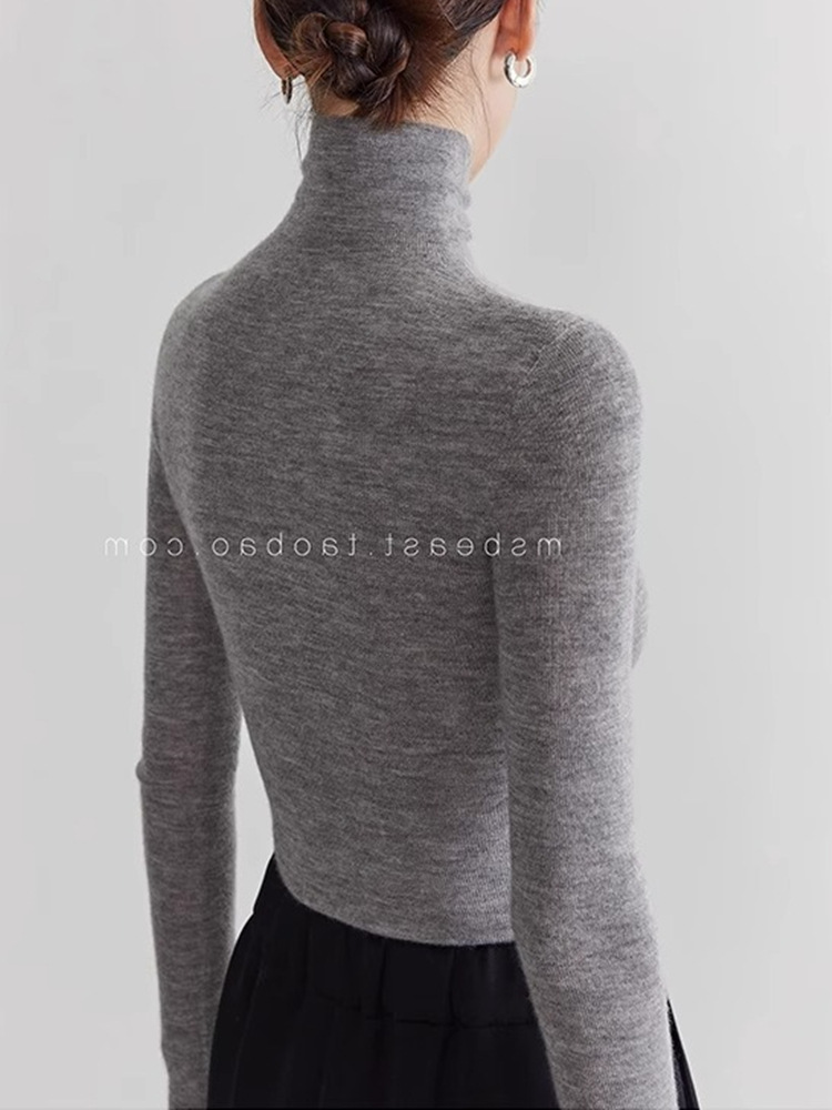 灰色高领针织打底衫女秋冬高级感软糯修身毛衣内搭设计感气质上衣