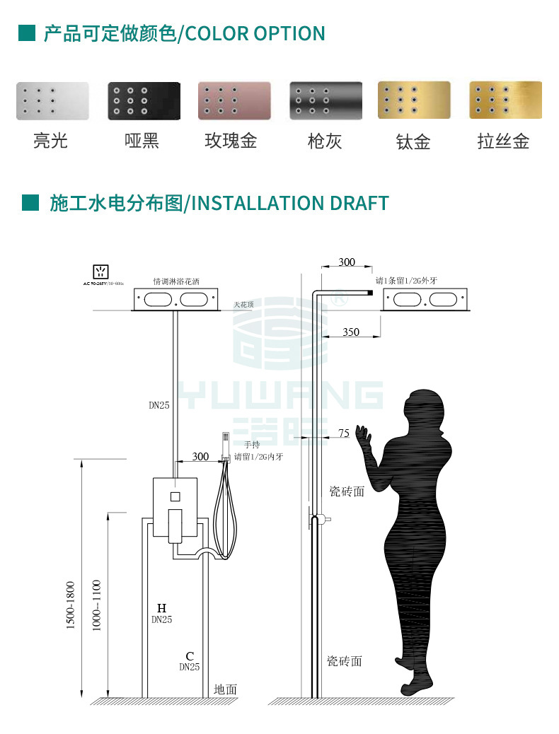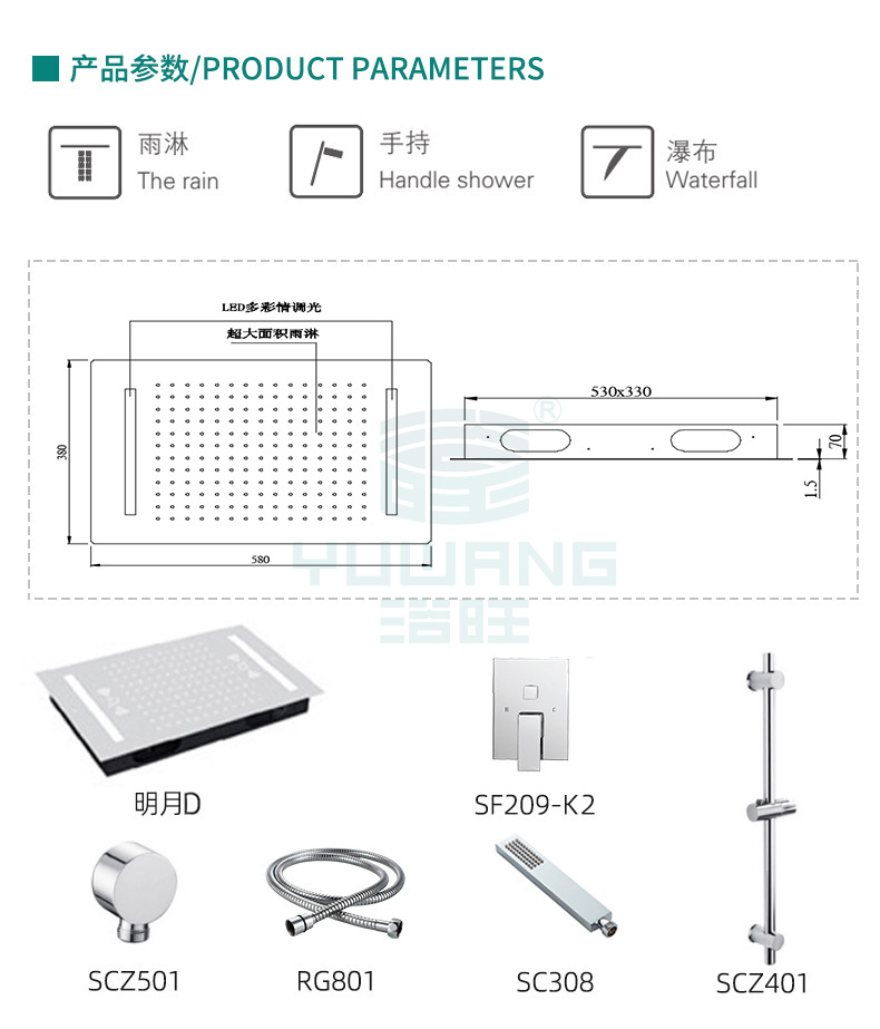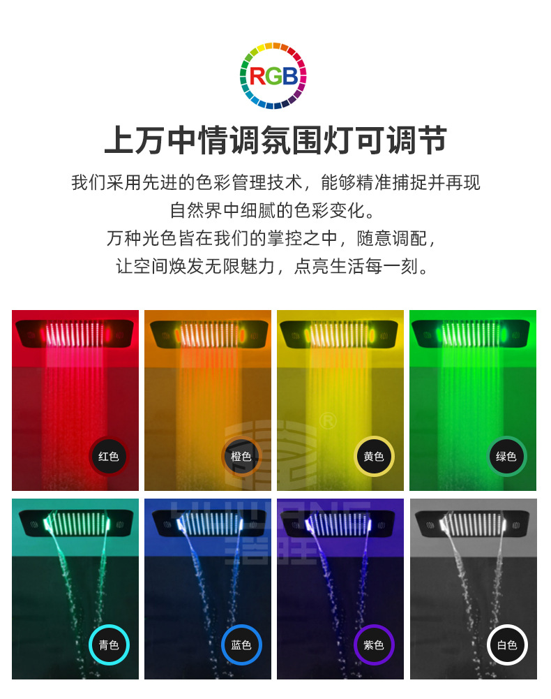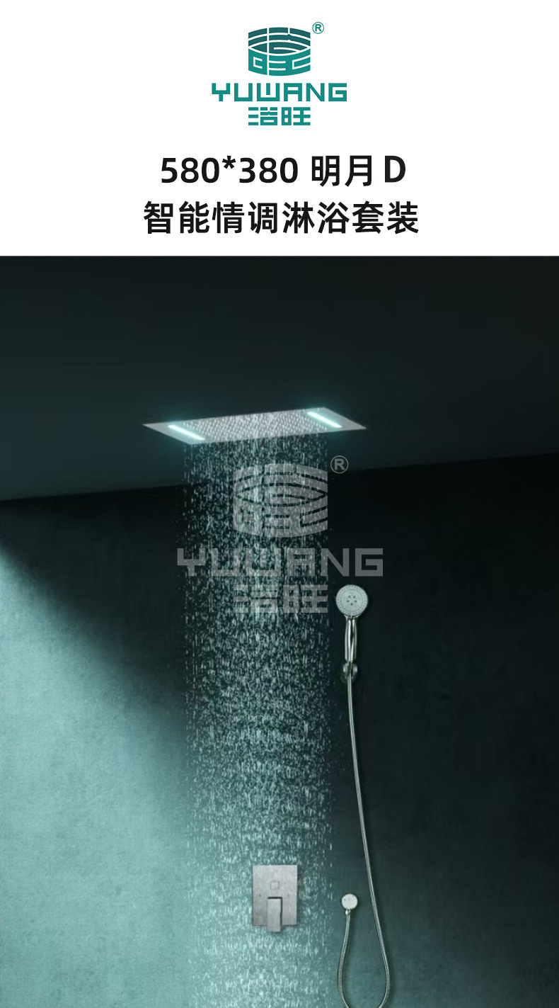 浴旺智能情调淋浴套装不锈钢花洒大面积雨淋恒温酒店LED音乐花洒