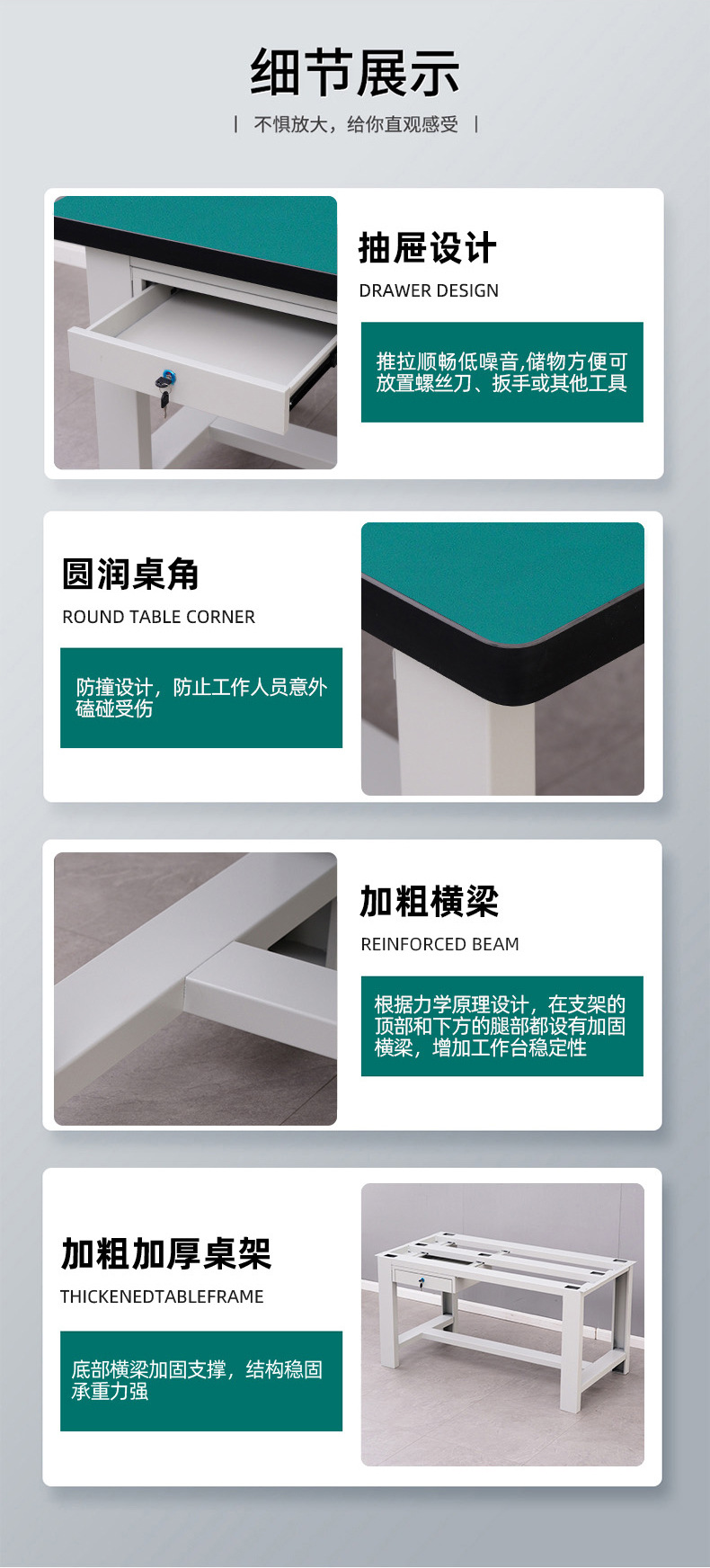 推荐理由:防静电工作台重型带抽屉车间工厂生产线桌子防静电桌面铁质桌架