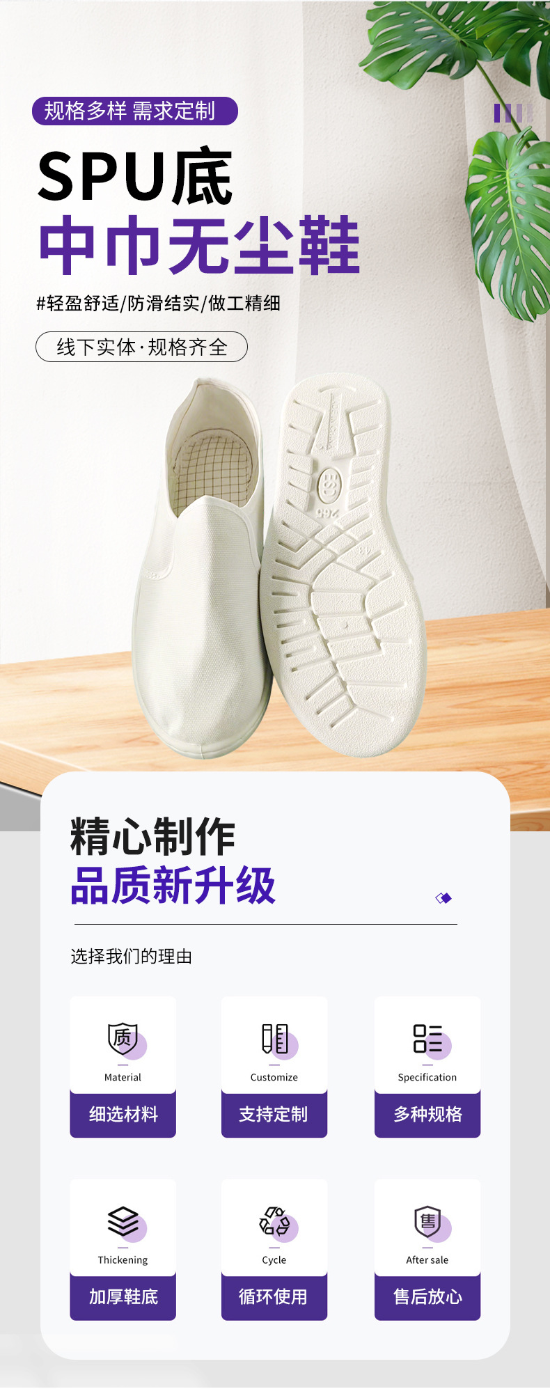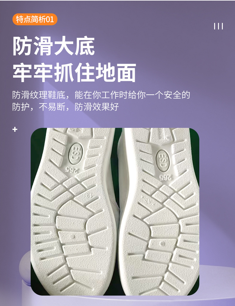 SPU底蓝白中巾无尘鞋加厚软底舒适车间防静电工作鞋男女款静电鞋