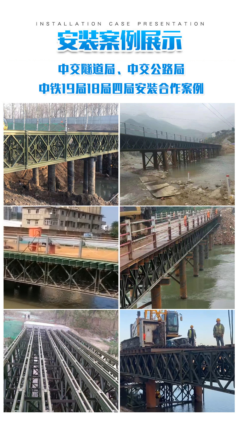 推荐理由:我们是专注贝雷钢桥研发生产的源头工厂,直供租赁与批发,省去中间环节性价比出众!精选高强度钢材打造,采用模块化设计,安装拆卸便捷高效,承载能力强、稳定性高,完全符合工程安全标准。