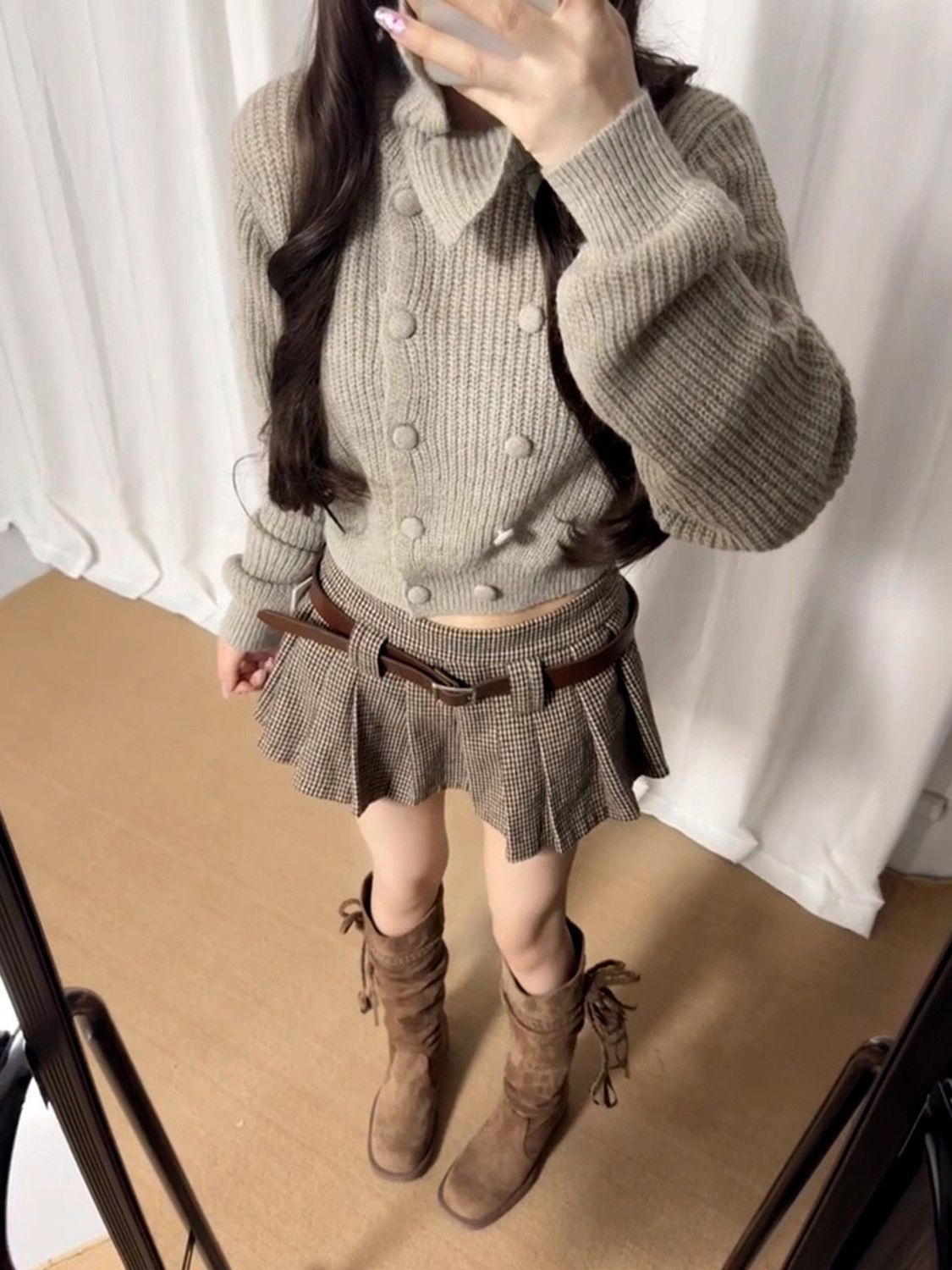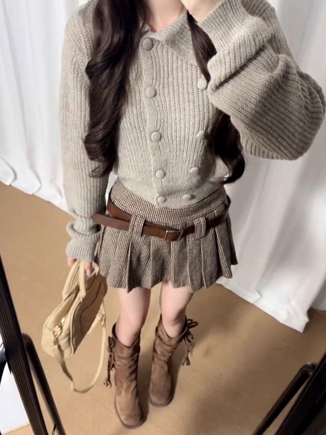 纯欲风套短款针织开衫半身裙两件辣妹2025套装女感设计秋冬季外套