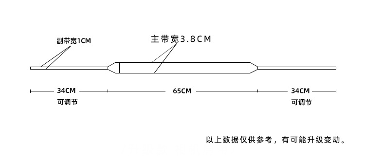 尺寸:总长134CM,65cm*3.8cm(主带),34CM*1CM(两头细带部分)