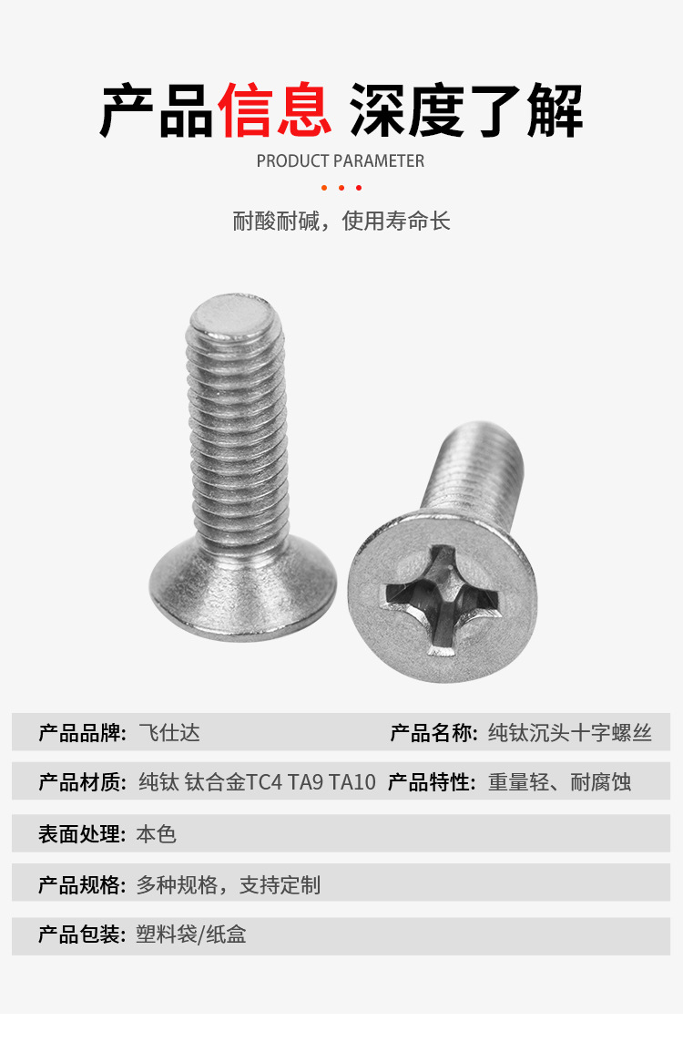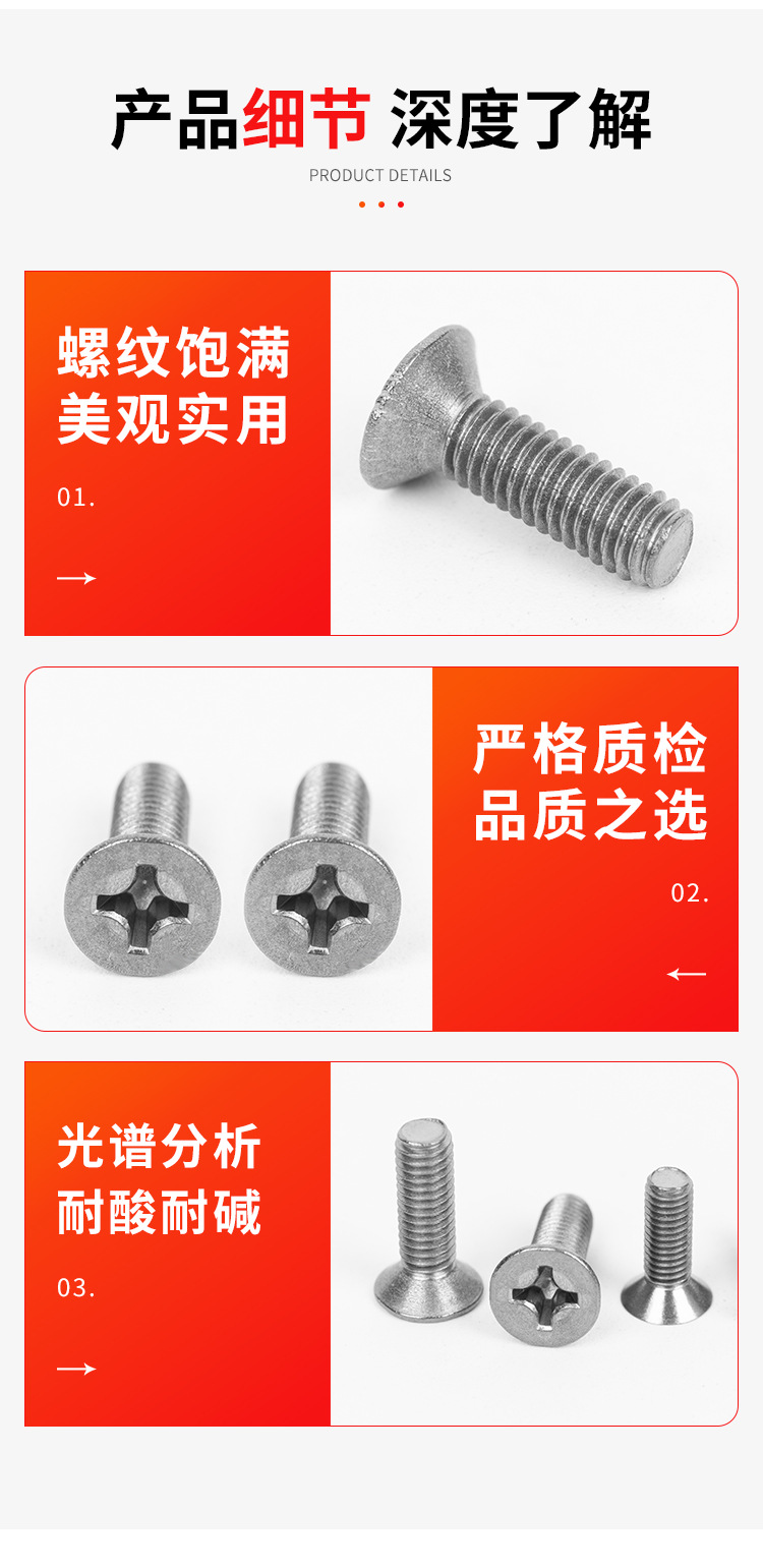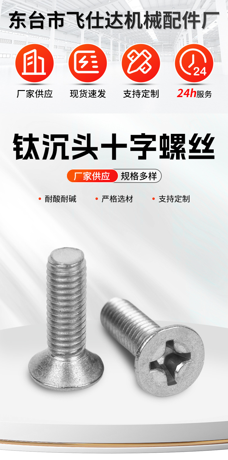 钛沉头十字螺丝平头十字槽机牙螺丝沉头螺钉M2M2.5M3M4M5M6M8
