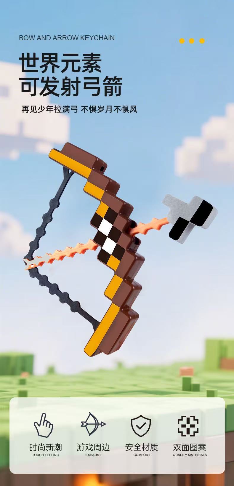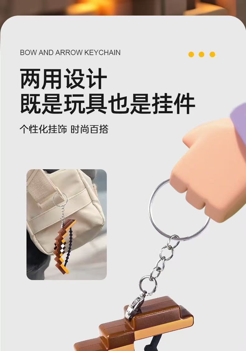 跨境我的diy世界像素弓箭迷你弓箭软弹头钥匙扣礼物可发射玩具