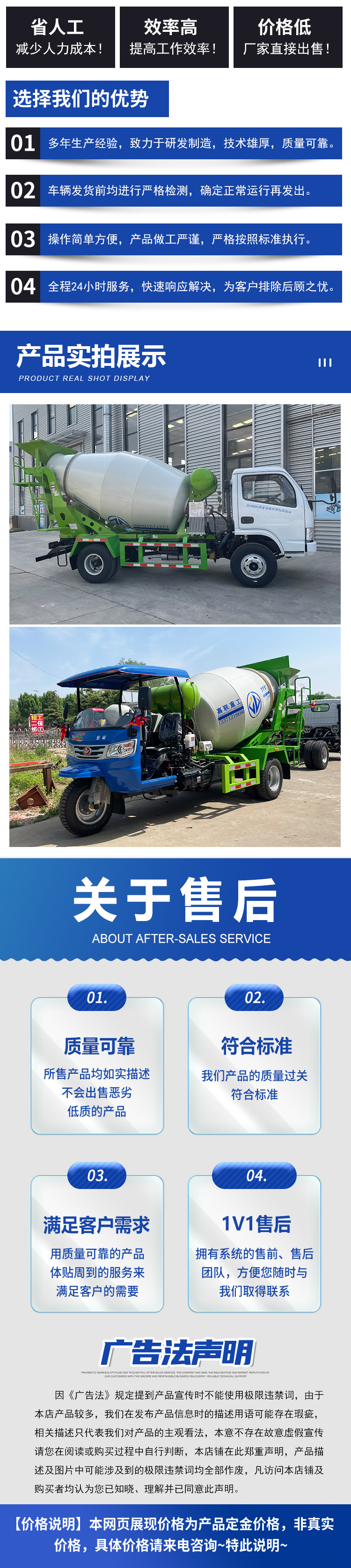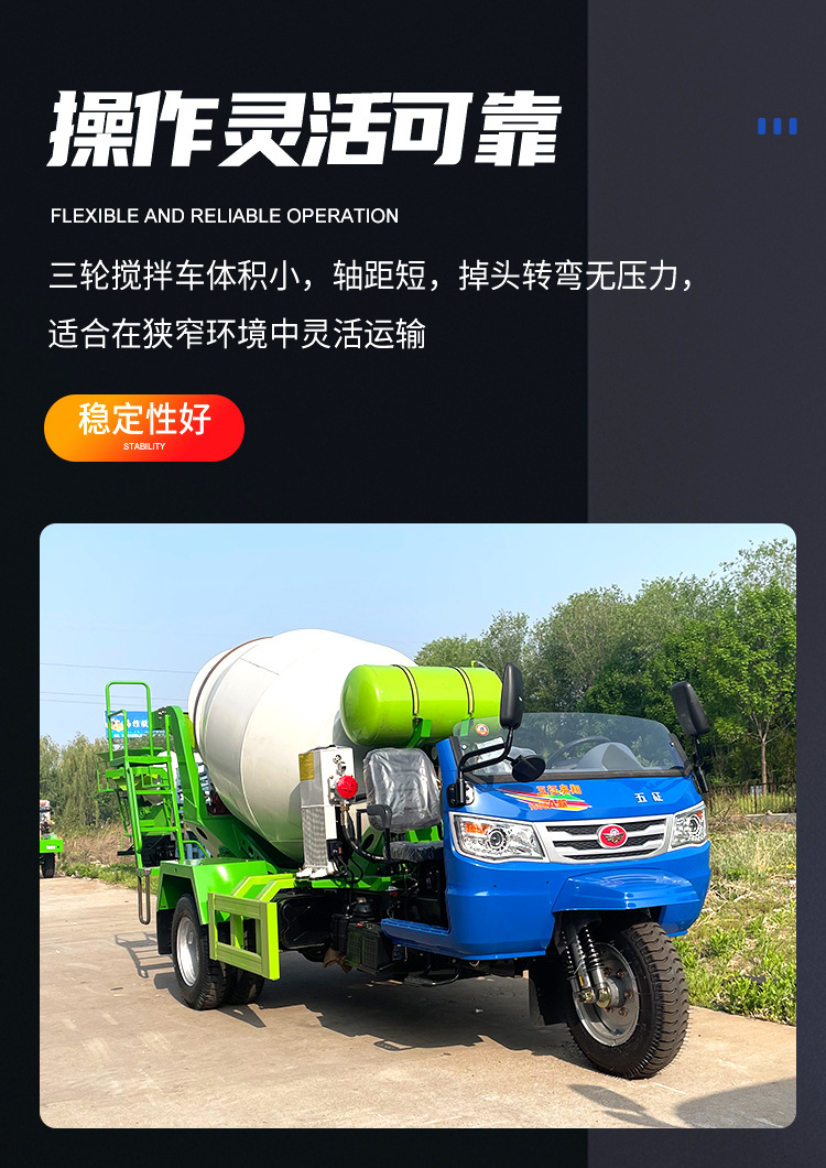 小型混凝土运输罐车修路建房地下室3方商砼车农用三轮水泥搅拌车