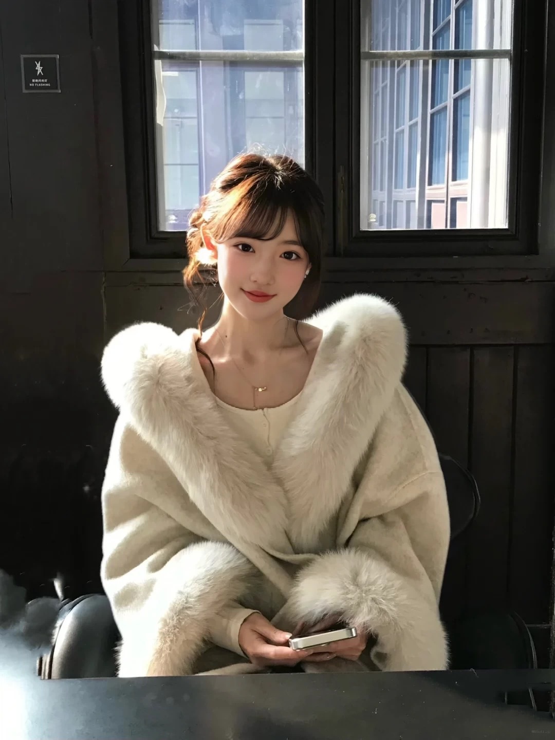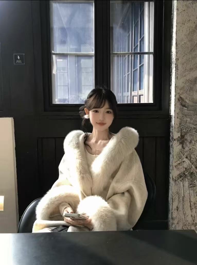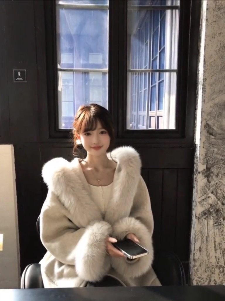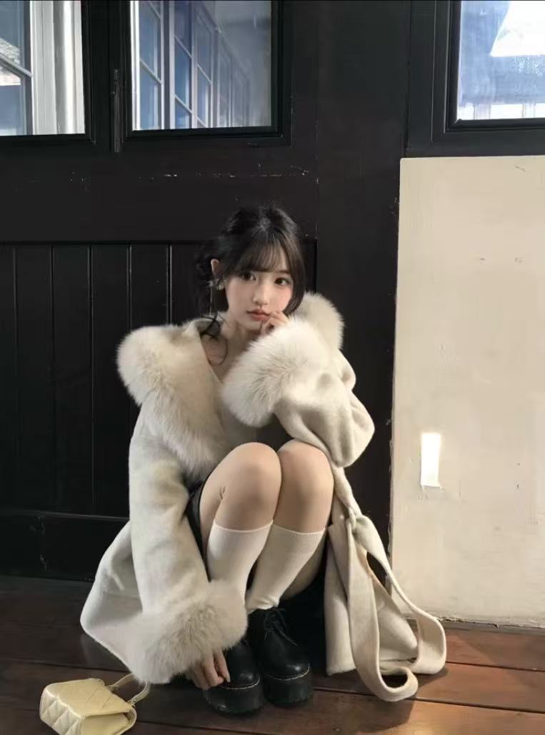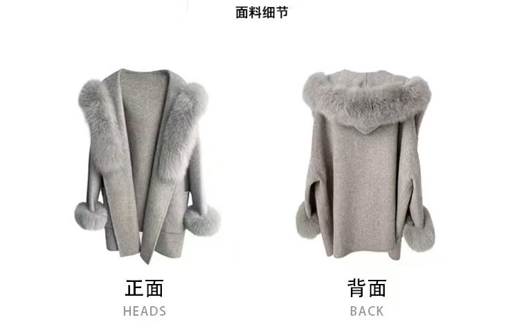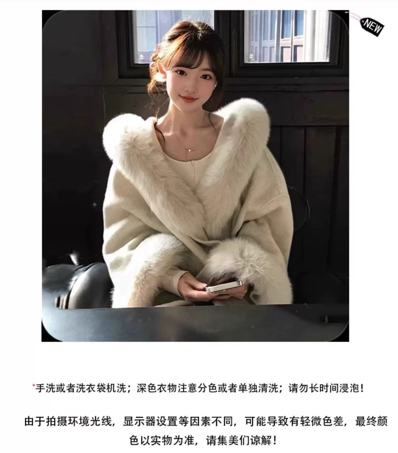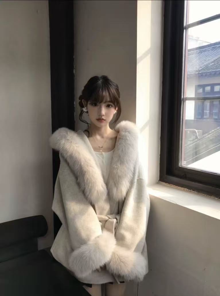气质款千金感仿狐狸毛领羊毛大衣冬季设计袖口毛毛保暖毛呢
