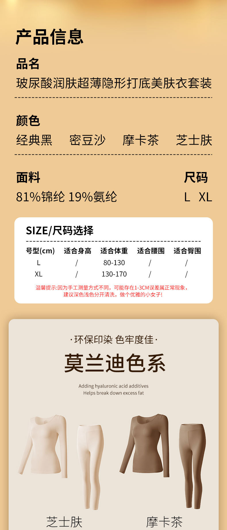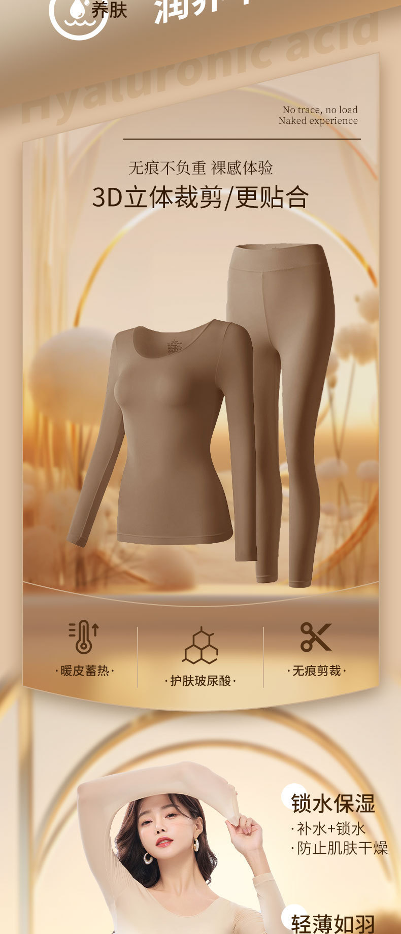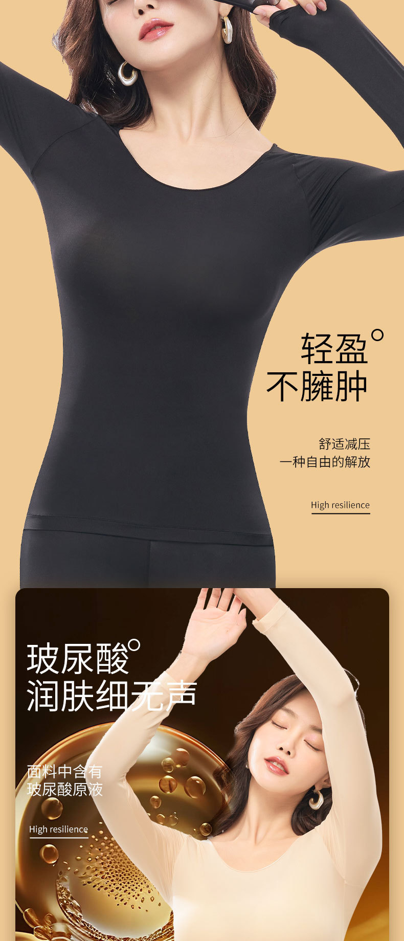 玻尿酸润肤保暖长袖长裤发热面膜美肤衣高弹秋衣裤保暖内衣套装女