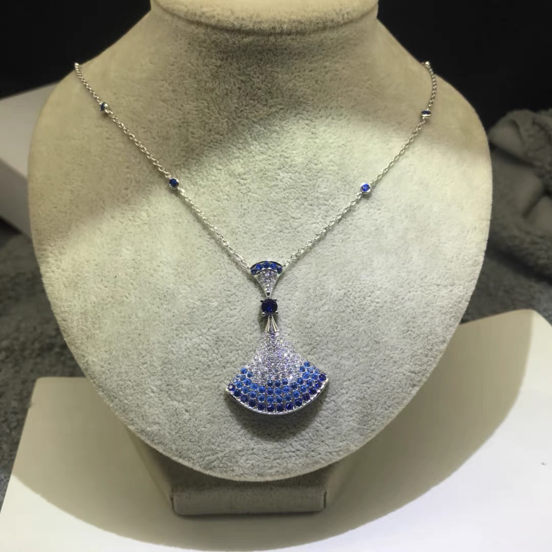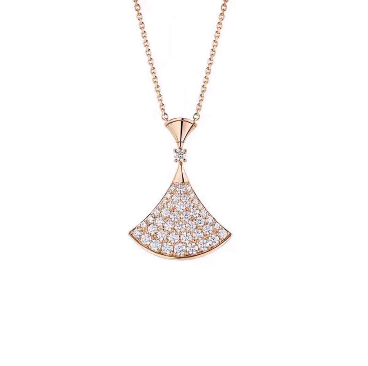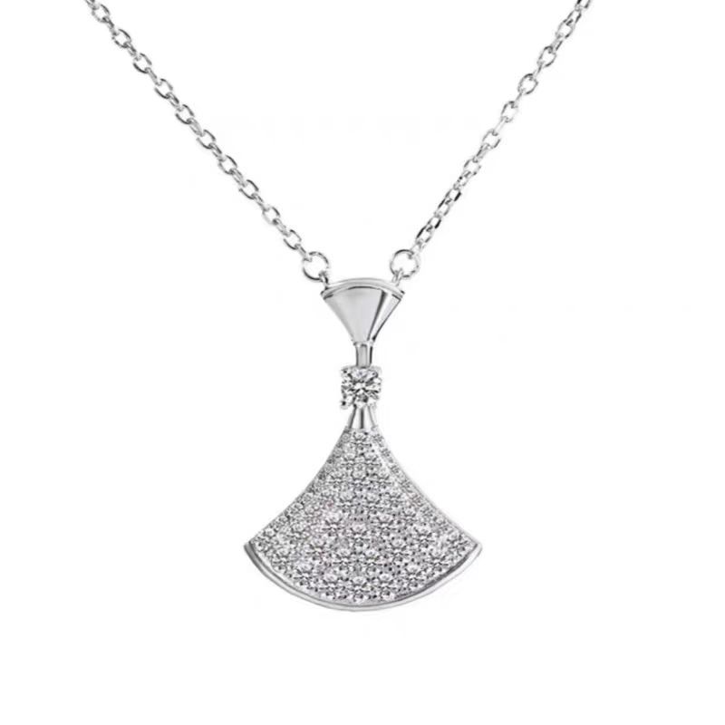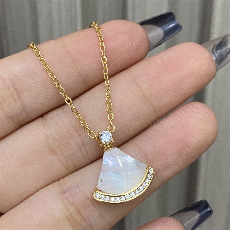 宝家高品质天然贝母大小裙子项链女轻奢气质满钻红刚玉扇形锁骨链
