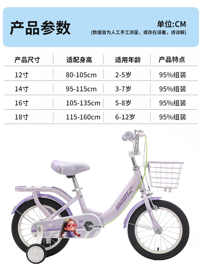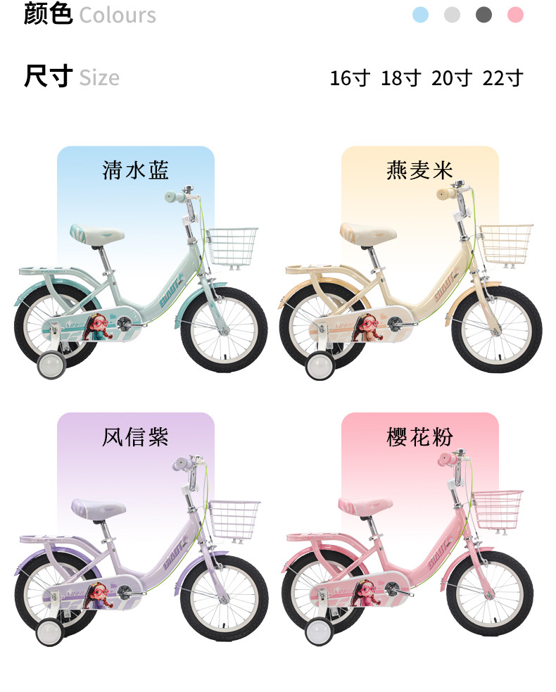 捷奥特新款儿童自行车女款宝宝脚踏单车女孩公主款12 - 20寸厂家