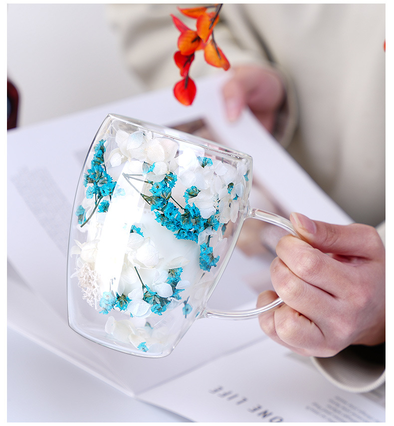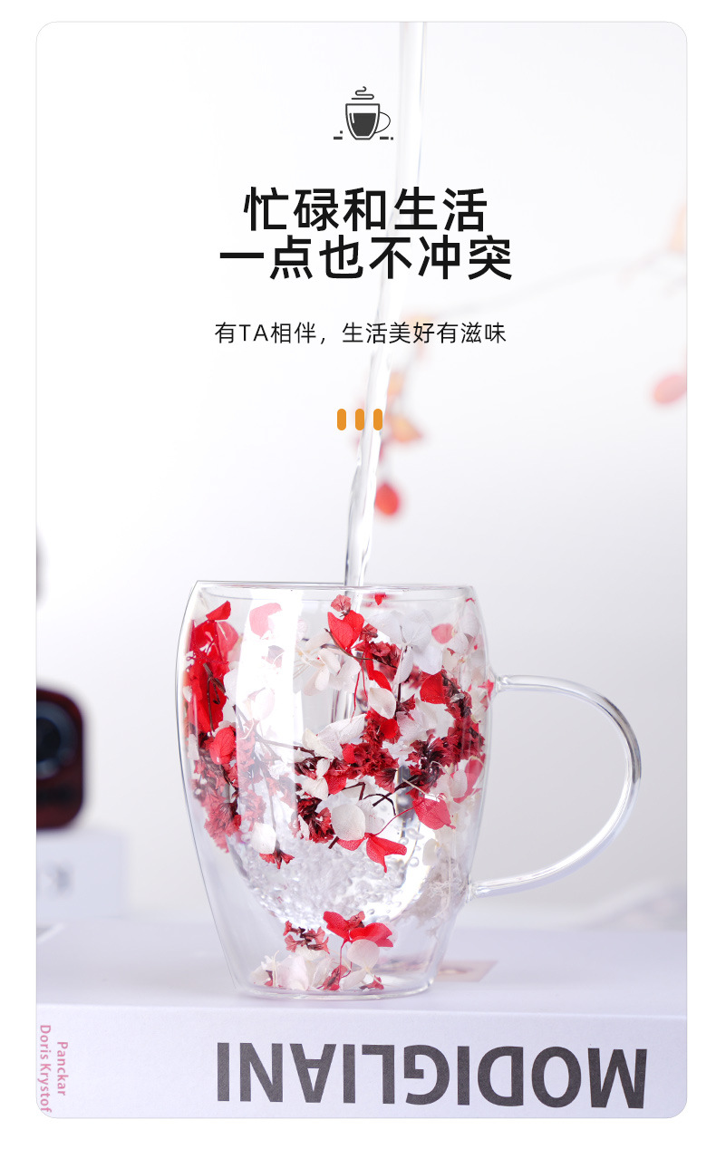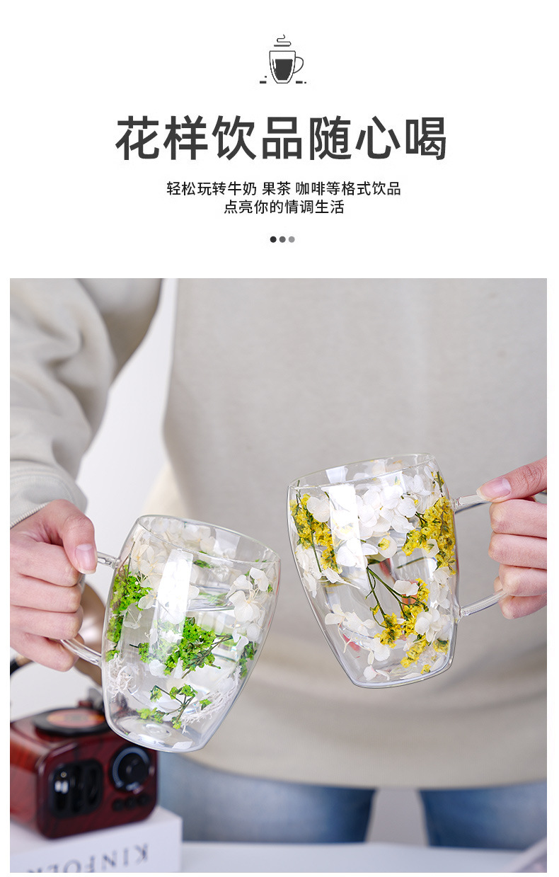 推荐理由:跨境新款代发双层真花杯高颜值咖啡杯高硼硅双层玻璃杯热卖爆款销