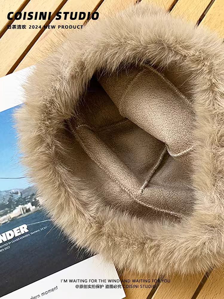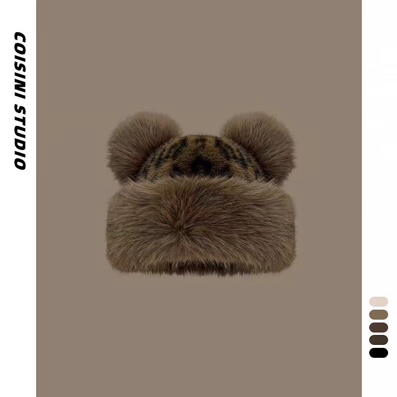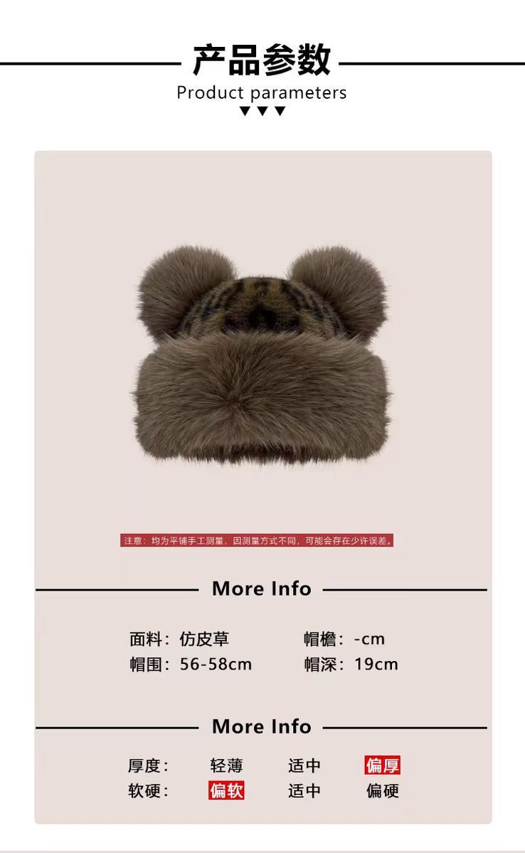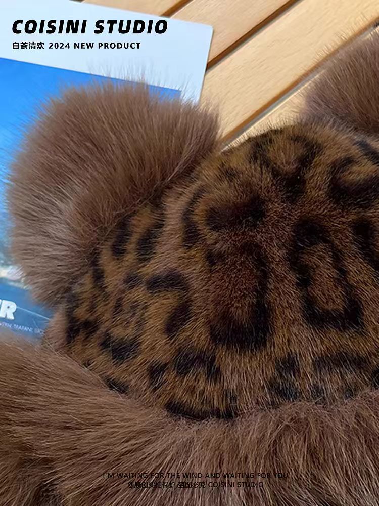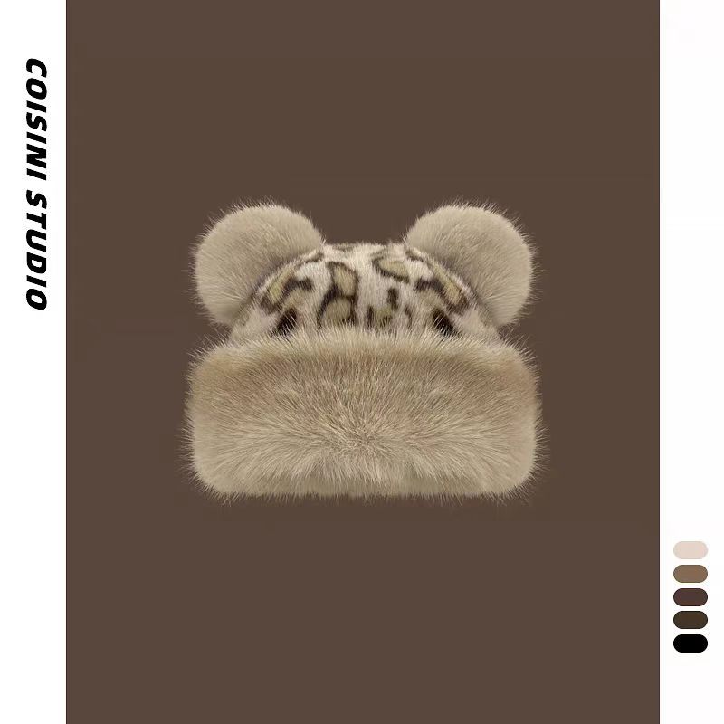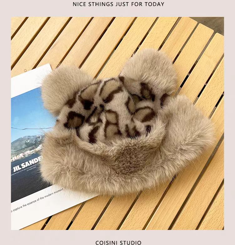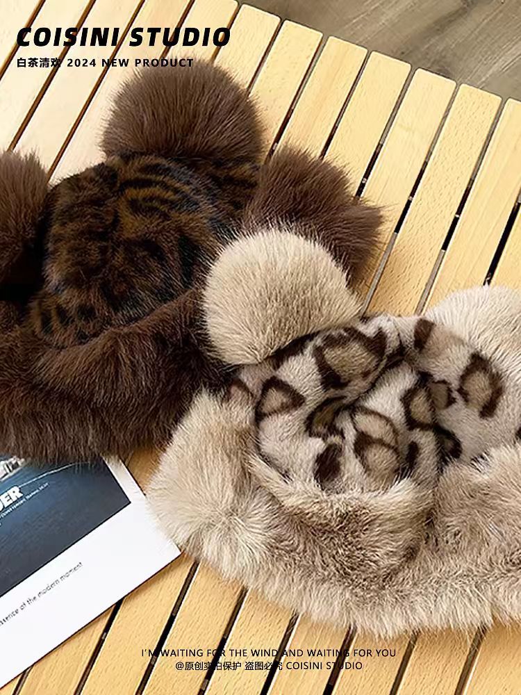 批发豹纹毛绒小熊蒙古帽子女秋冬2024仿皮草保暖渔夫帽休闲百搭