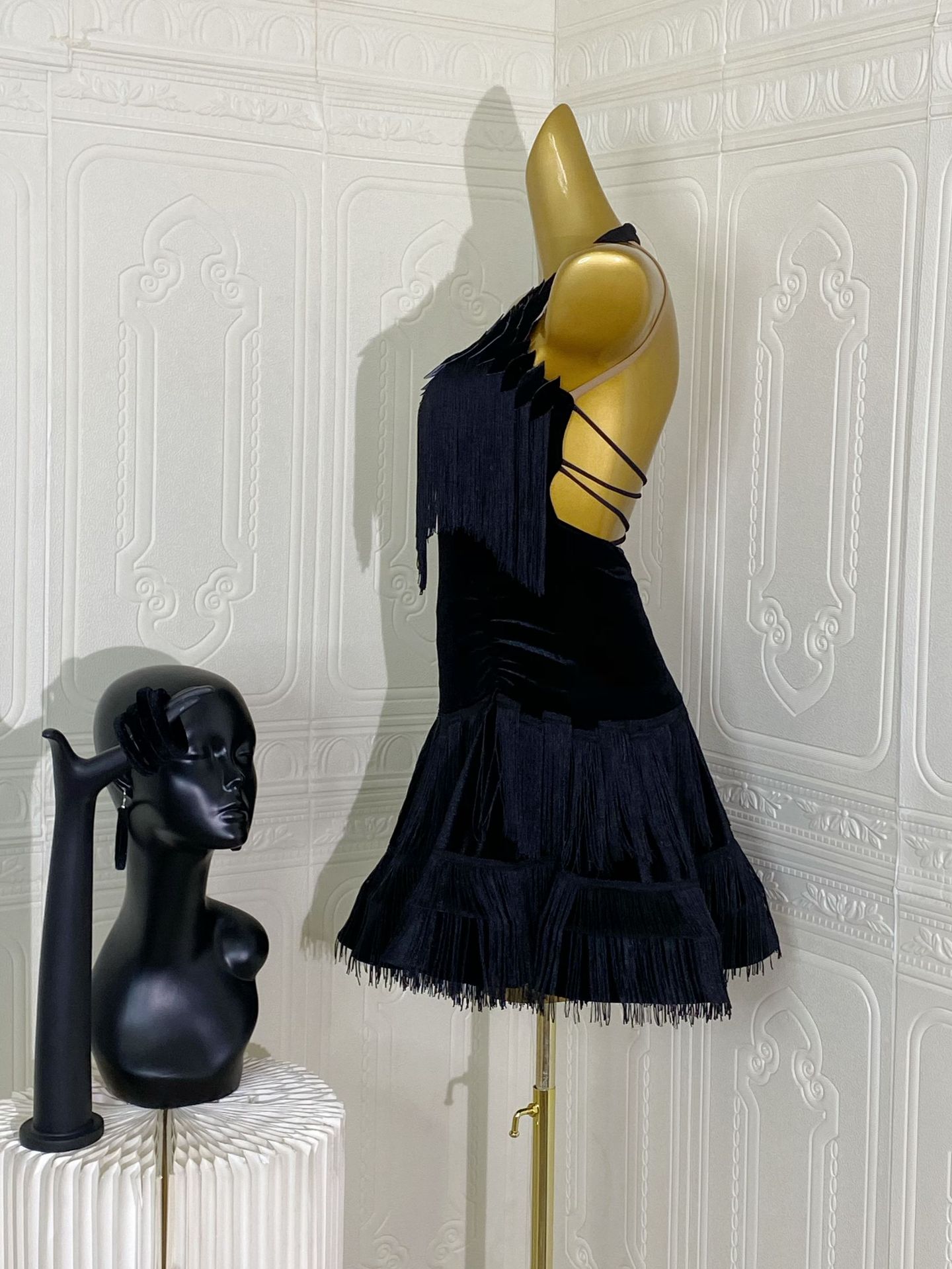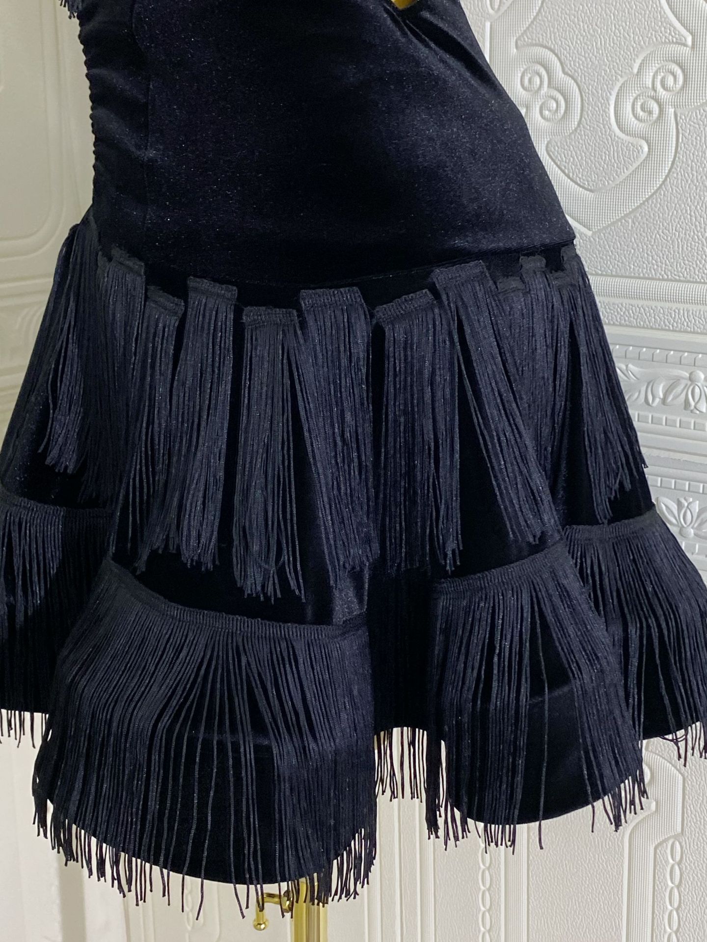 [ 商业 ] 跨境亚马逊新款欧美性感流苏拼接性露背舞裙深V领连衣裙拉丁舞服