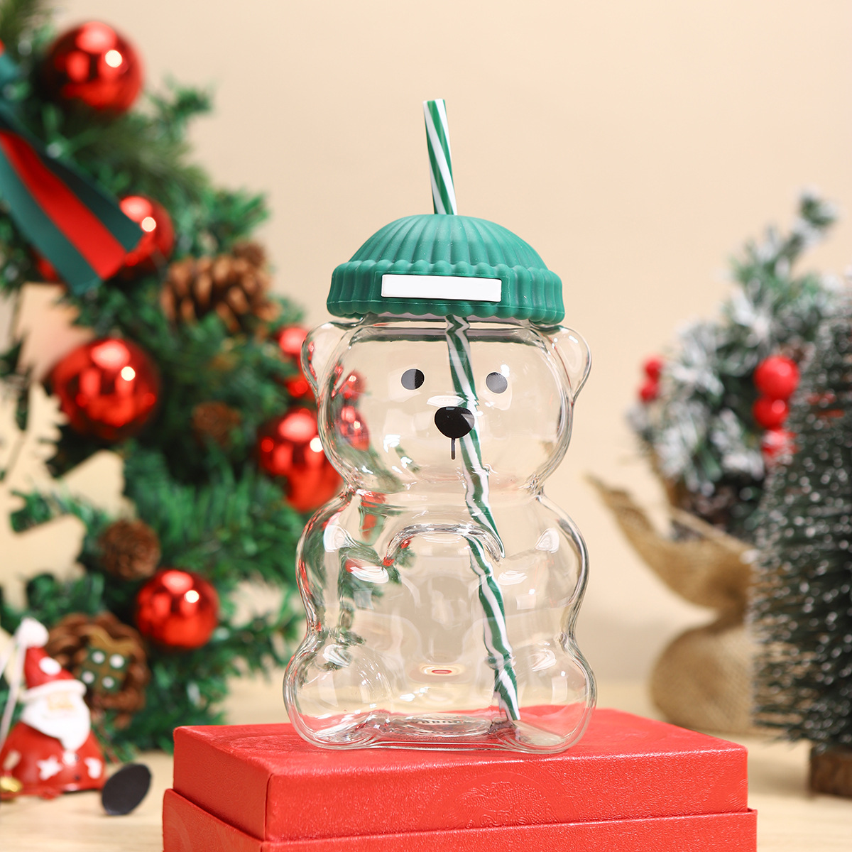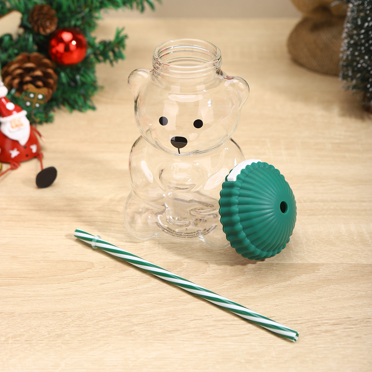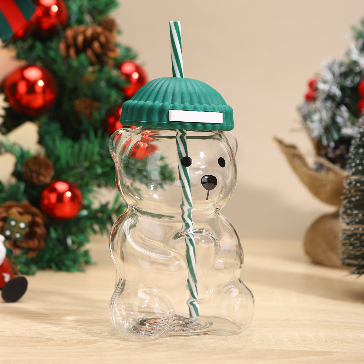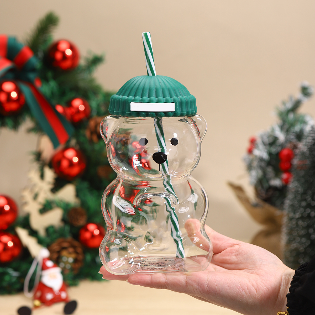 新款创意高颜值小熊玻璃杯儿童可爱卡通喝水杯便携带吸管奶茶杯