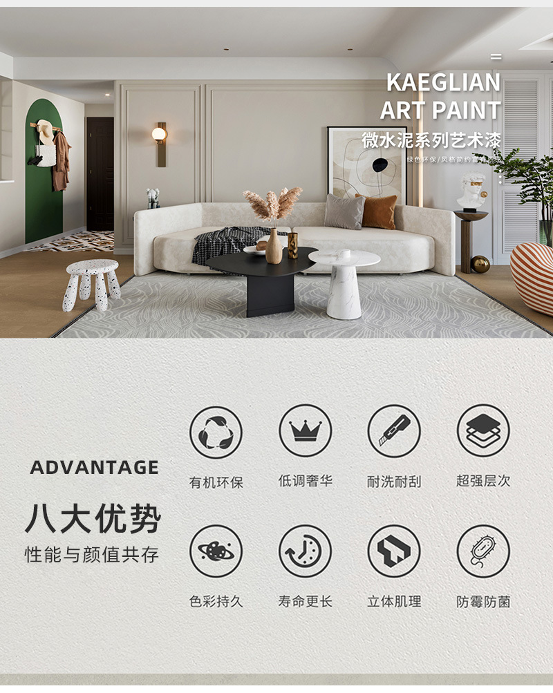 卡伊莲微水泥墙面涂料现代极简墙面涂漆防水防潮哑光漆可上门施工