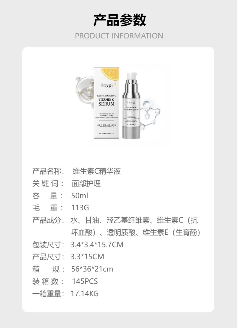 HOYGI 维生素C液 面部皮肤清爽温和水润锁水柔肤柔润光泽护肤液