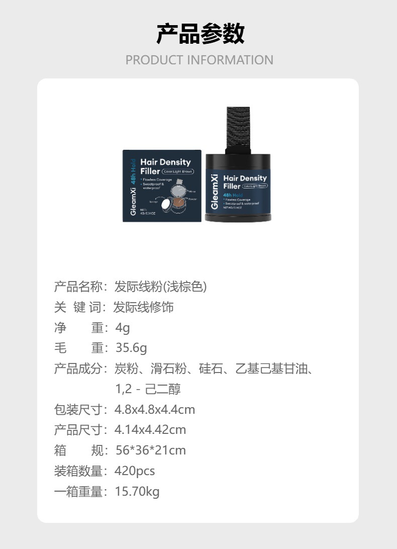 GleamXi发际线粉(浅棕色) 发际线修容发缝鬓角轮廓防水自然修饰