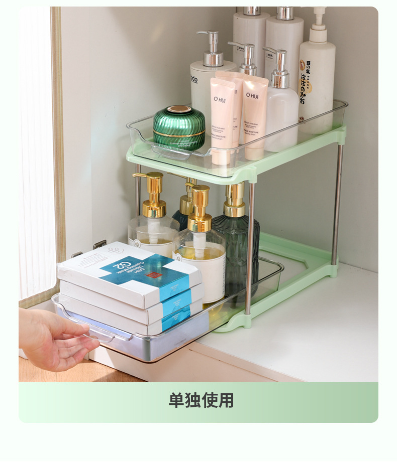 跨境新款PET下水槽收纳盒抽拉式浴室化妆品收纳架厨房调料整理架