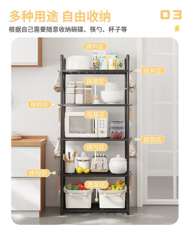 厨房浴室多功能置物架落地多层微波炉烤箱储物架货架锅具收纳架子