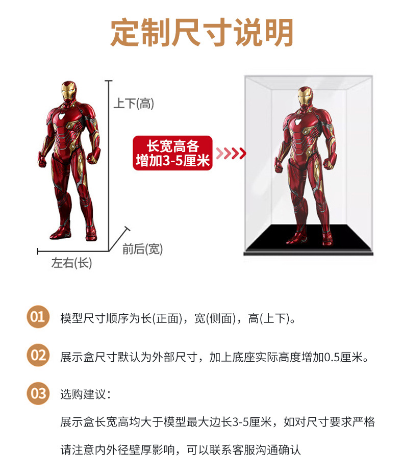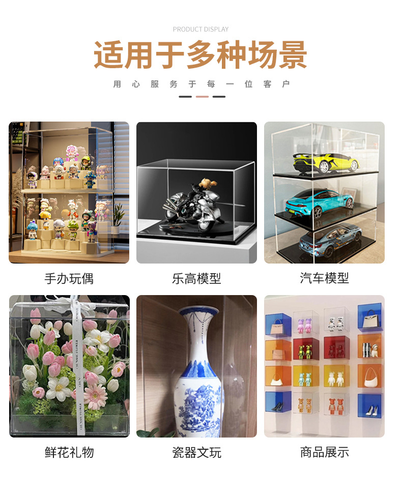 简约彩色加厚亚克力防尘罩模型动漫手办玩偶商品展示收纳防尘盒