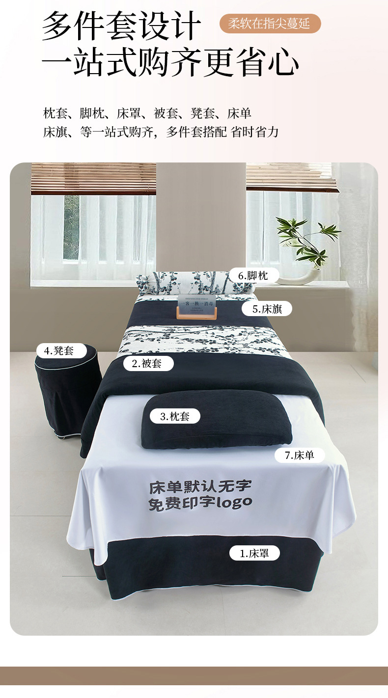 网红秋冬美容院床罩四件套四季通用棉高端轻奢美容按摩洗头三件套