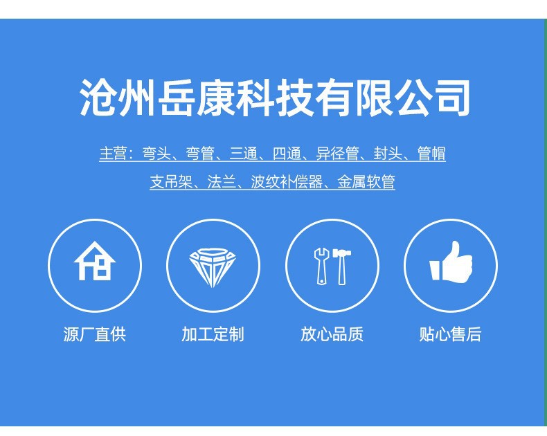 本公司专业生产各种高中低压弯头三通大小头法兰等各种管道连接件。