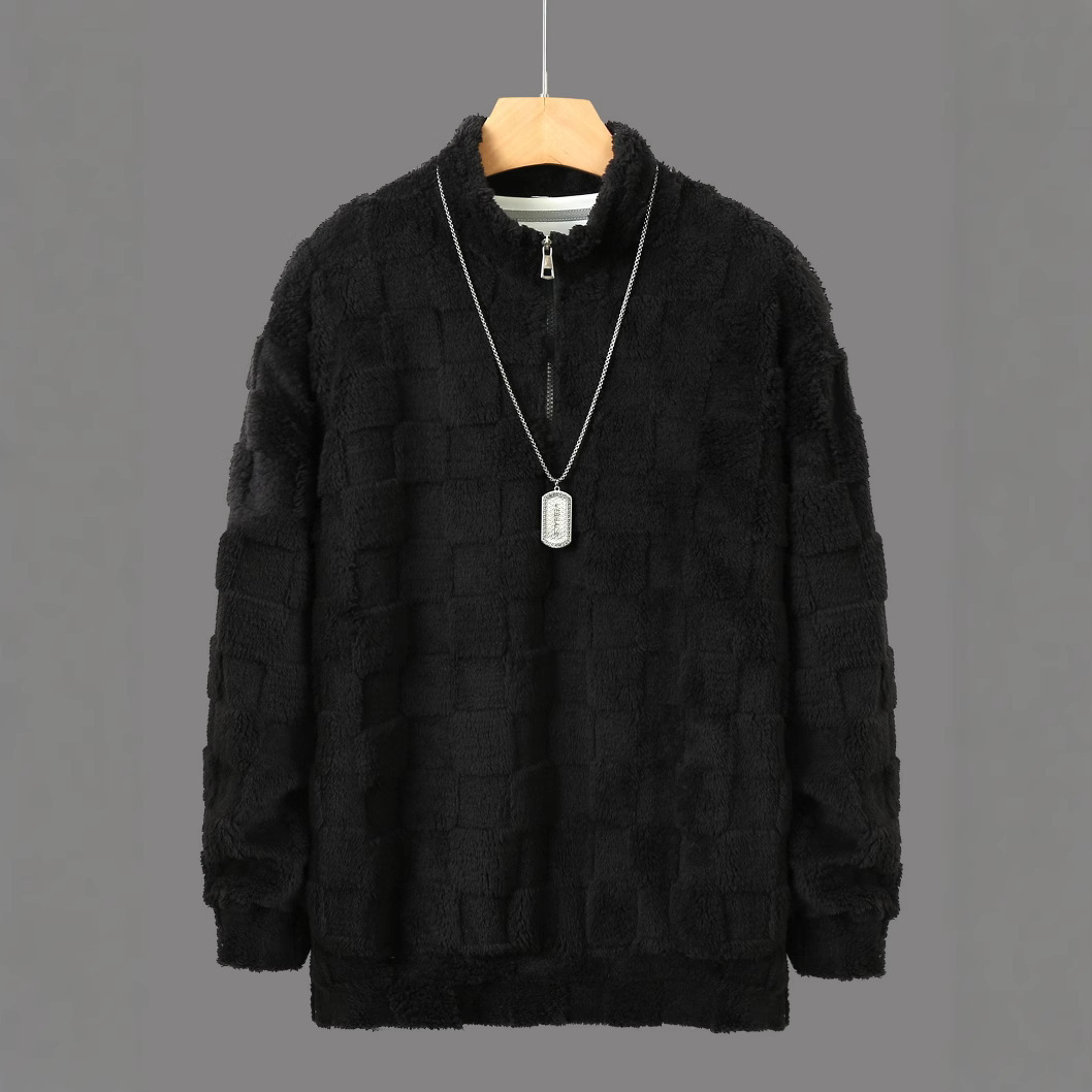 新款2024亚马逊速卖通男士爆款连帽宽松卫衣秋冬季休闲大码半拉链