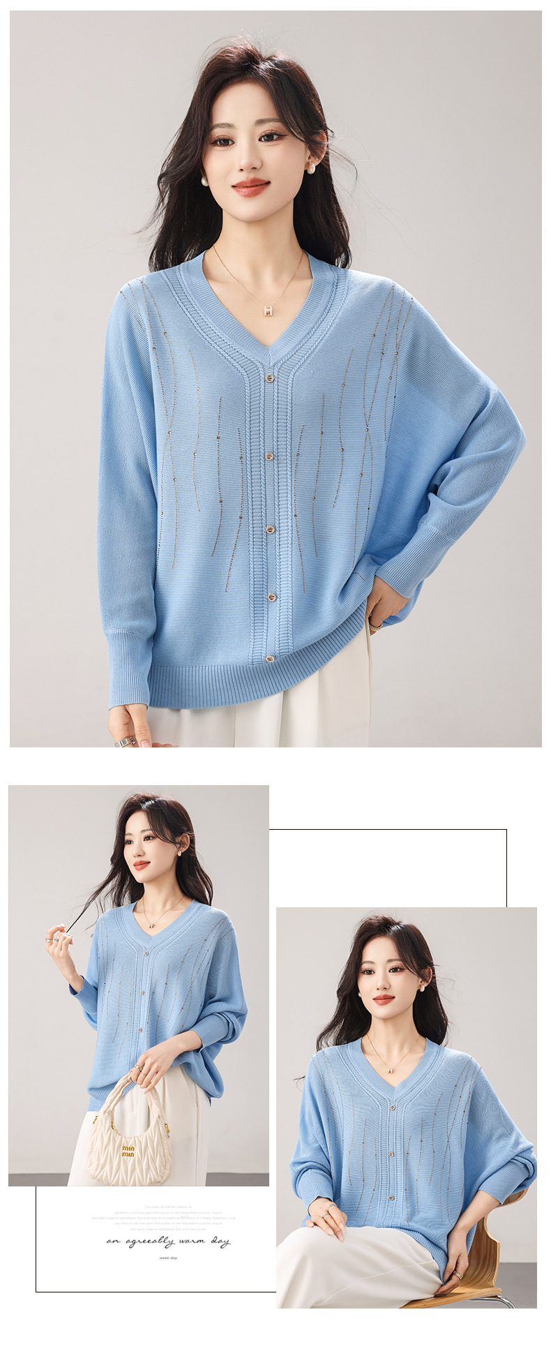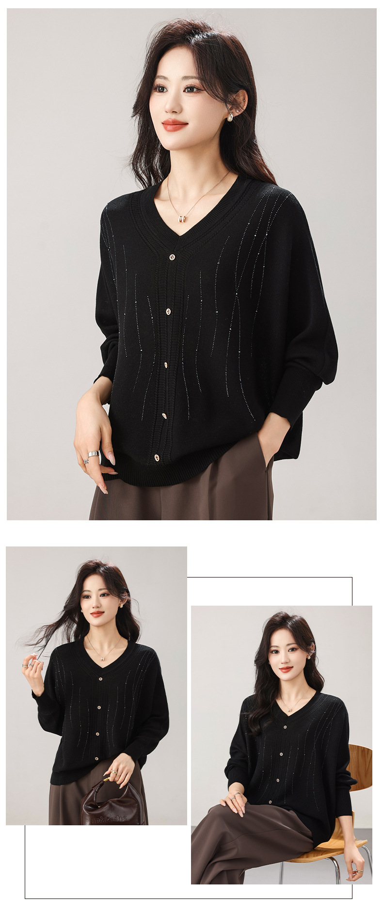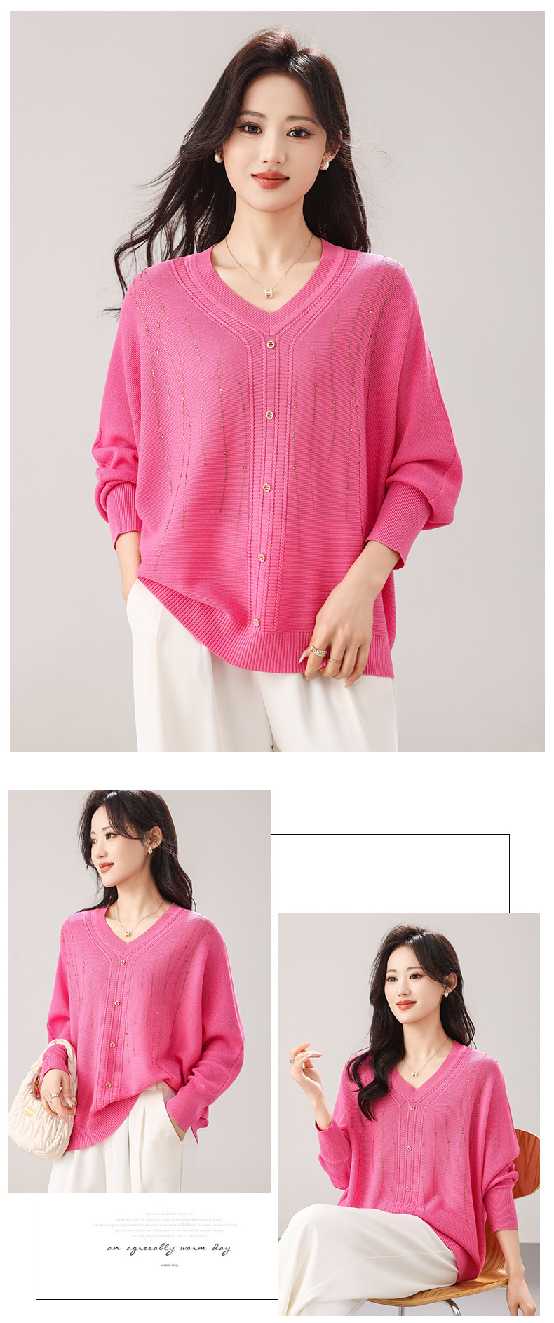 [ 商业 ] 大码女装2026春夏新款套头蝙蝠袖韩系慵懒风纯色宽松针织衫毛衣女