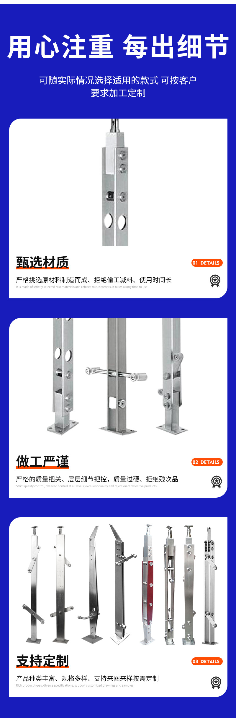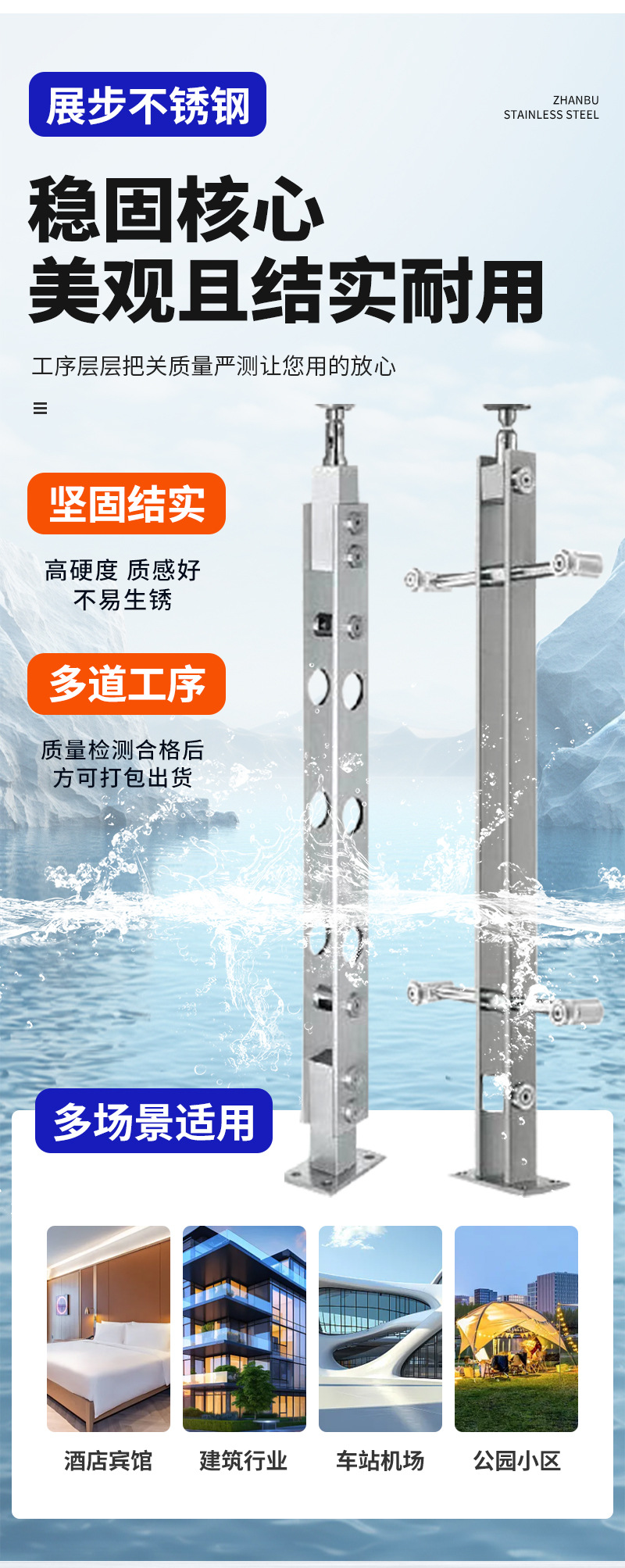 关键词:304不锈钢别墅立柱工程立柱栏杆商场钢化玻璃栏杆室外工地护栏