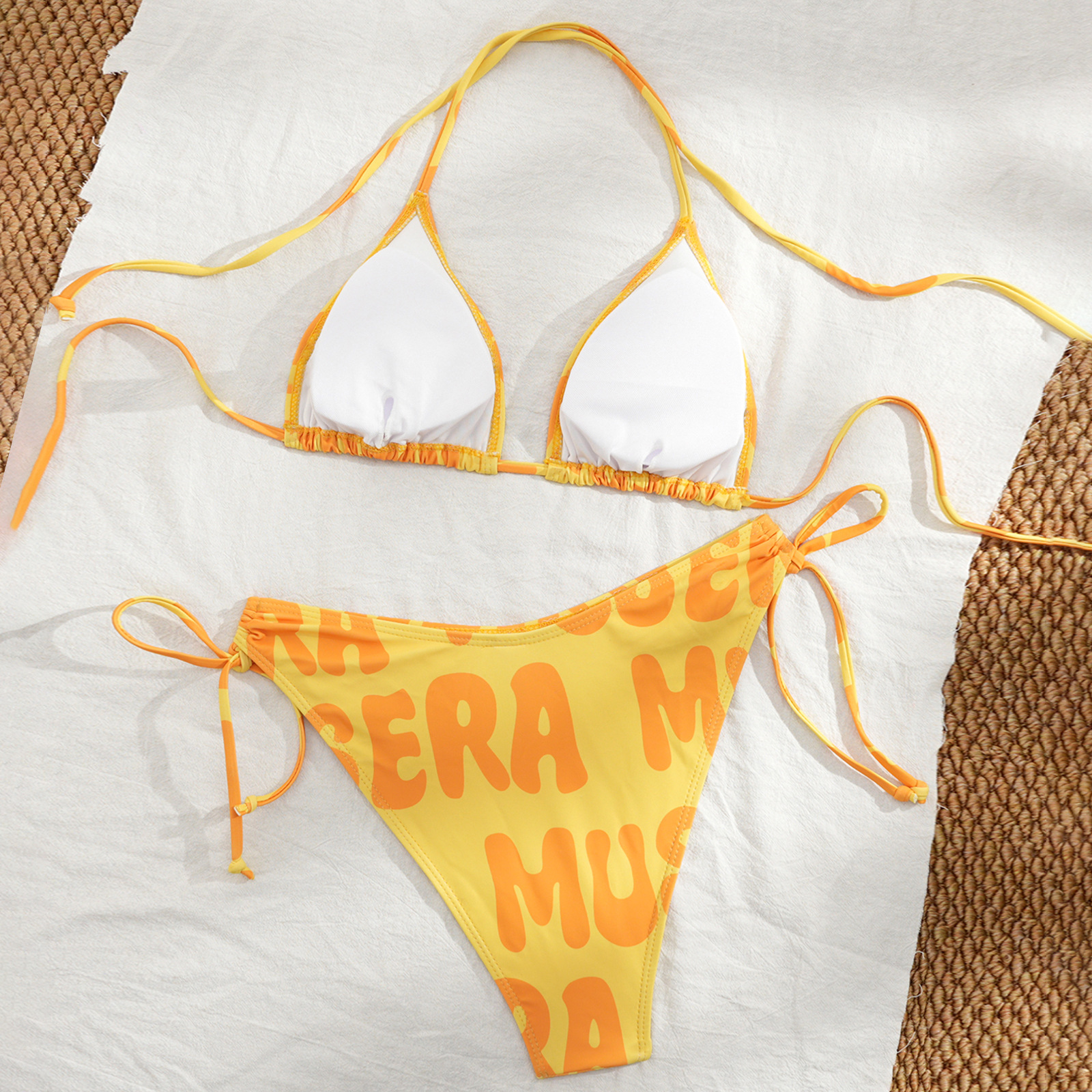 新款欧美跨境泳衣外贸印花性感分体纯欲挂脖泳装度假比基尼bikini