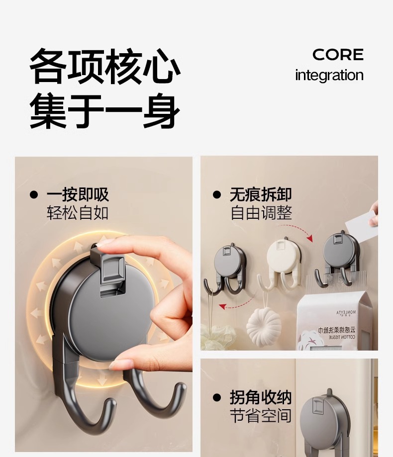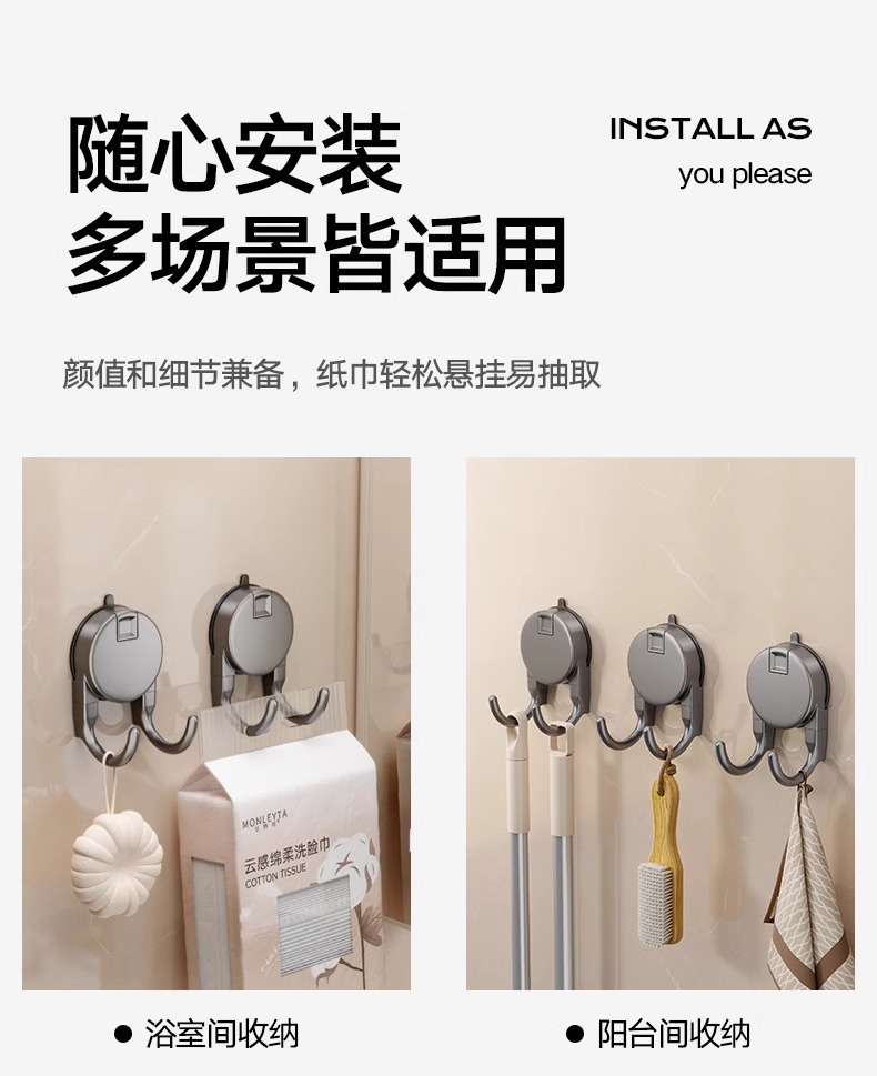[ 商业 ] 真空吸盘挂钩厕所浴室厨房卫生间收纳粘钩家用强力不掉现代简约