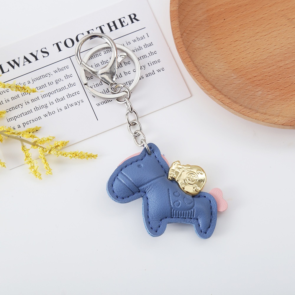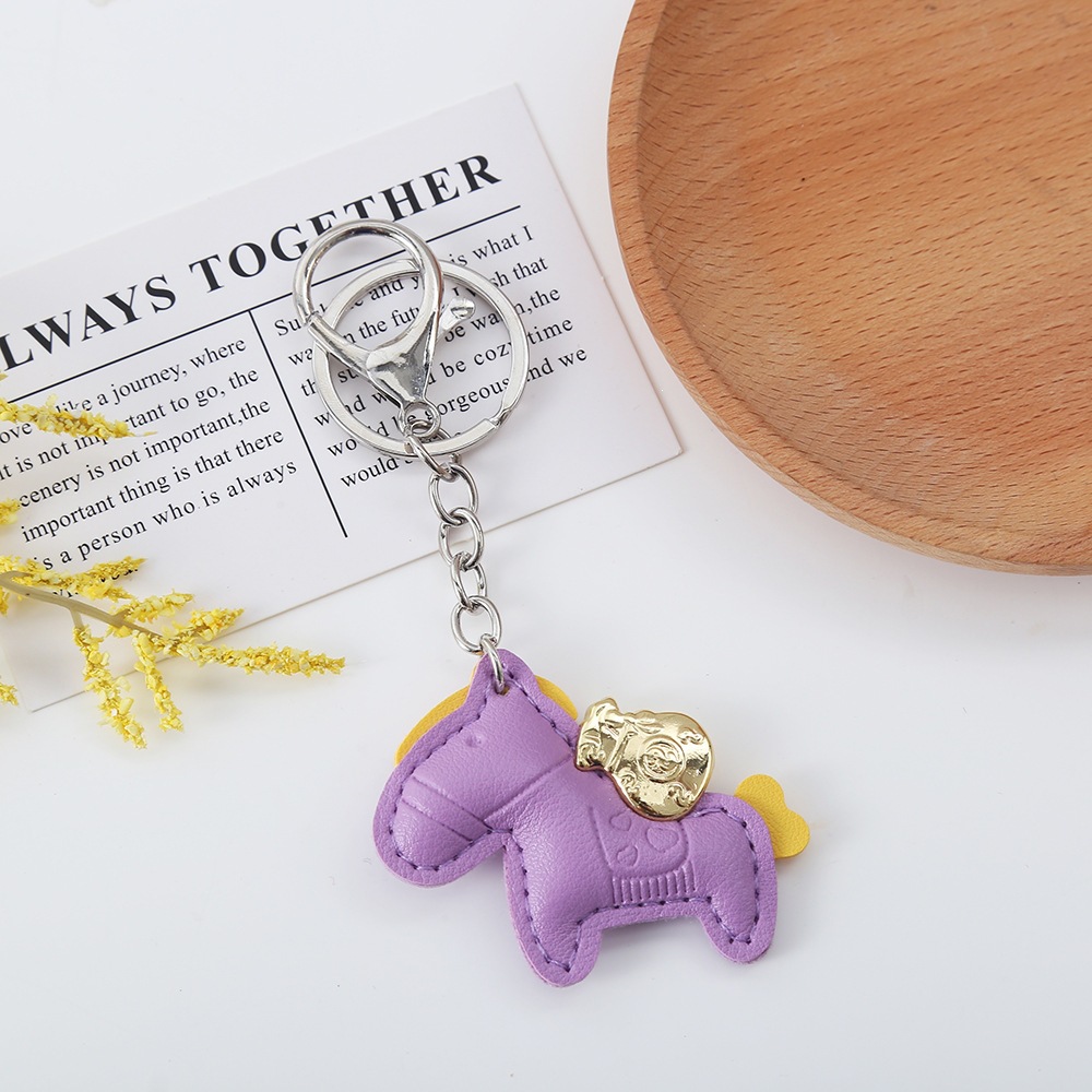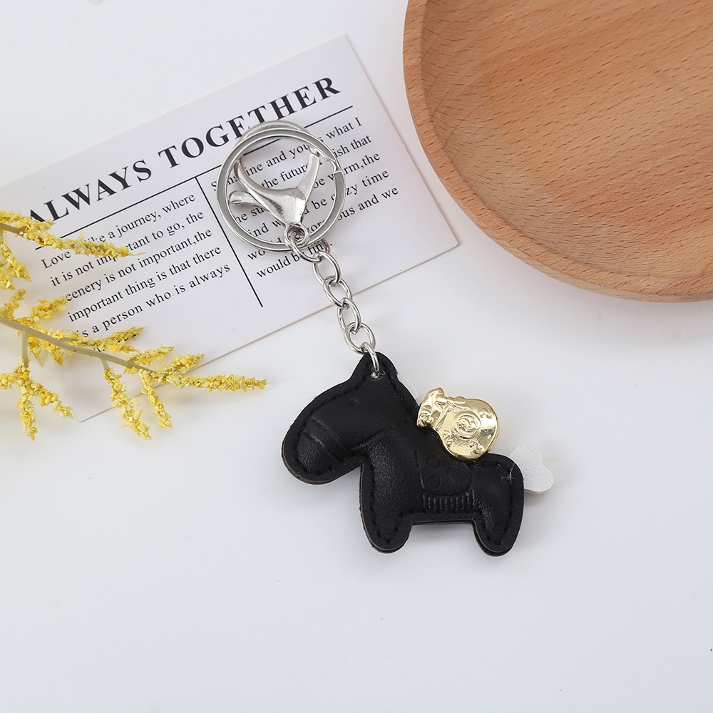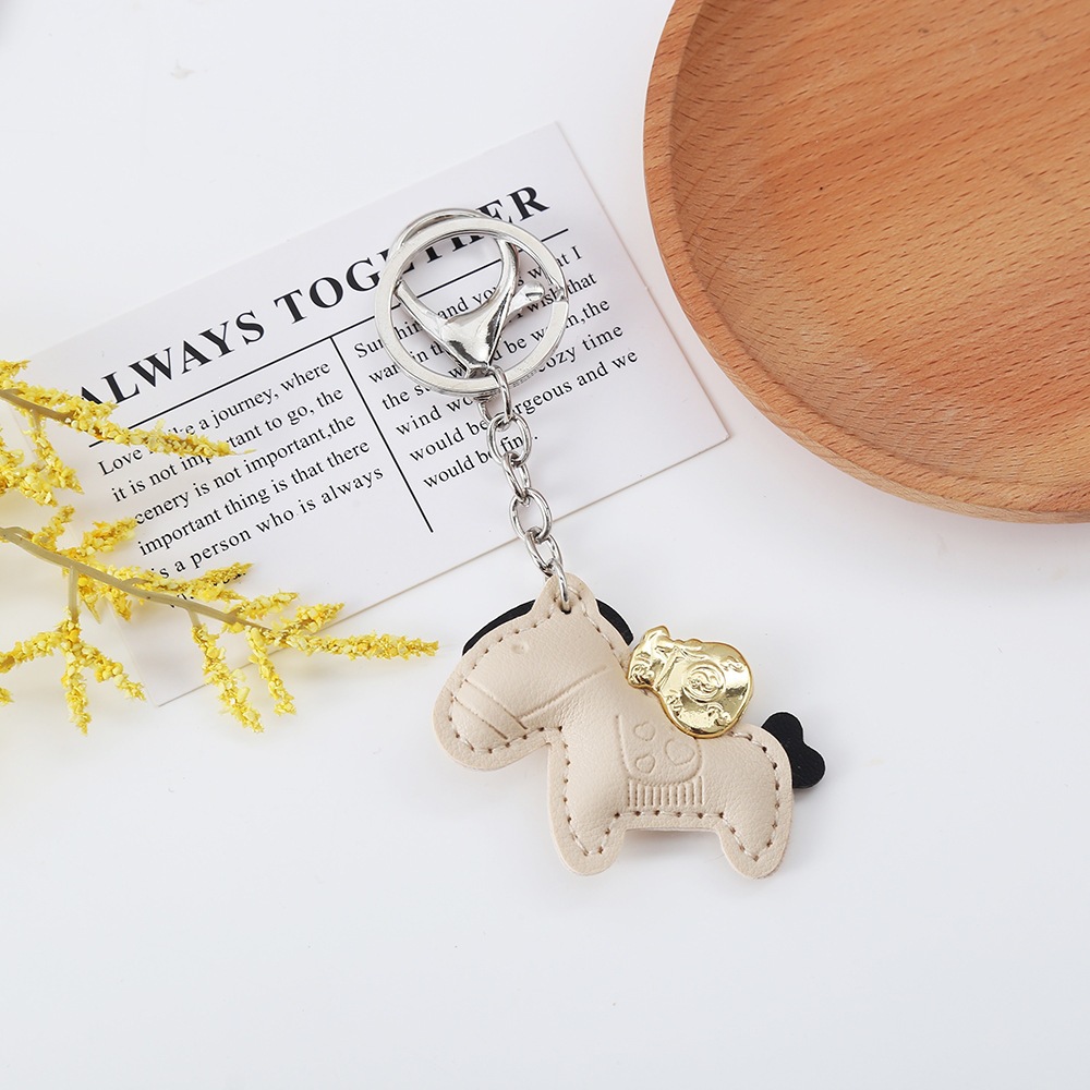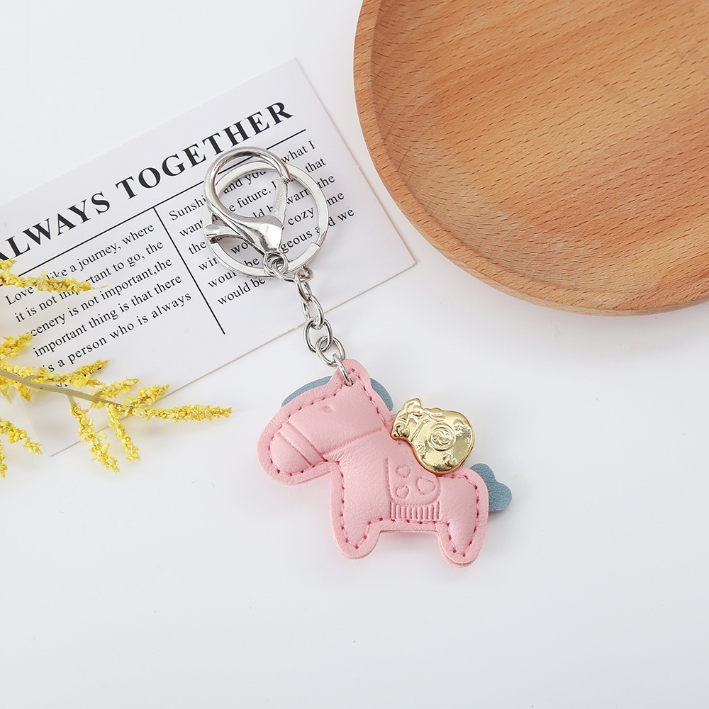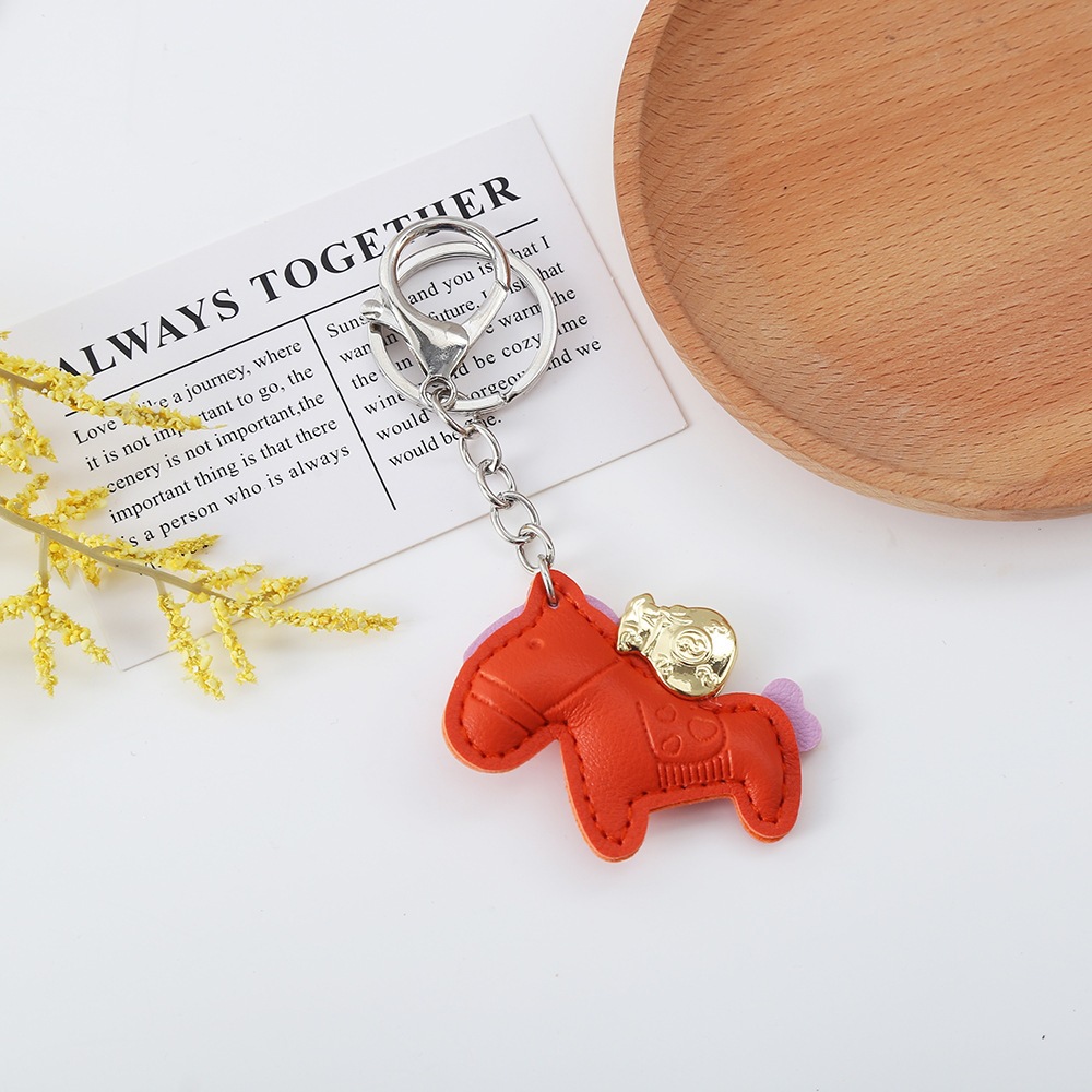 可爱创意马上有钱钥匙扣挂件精致书包背包装饰配件皮革小马挂件