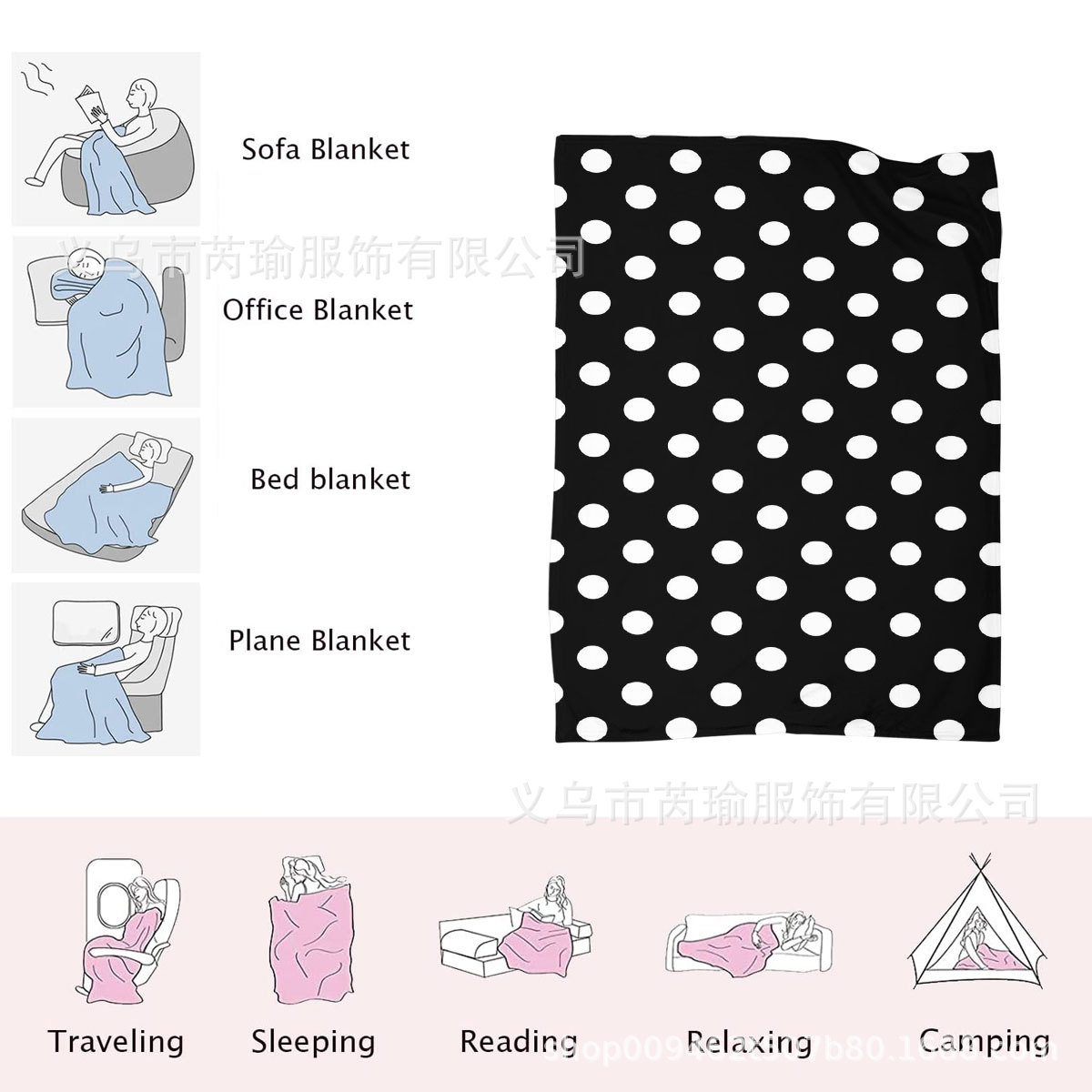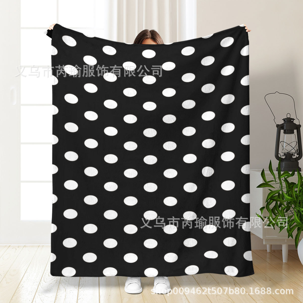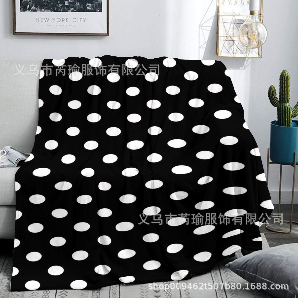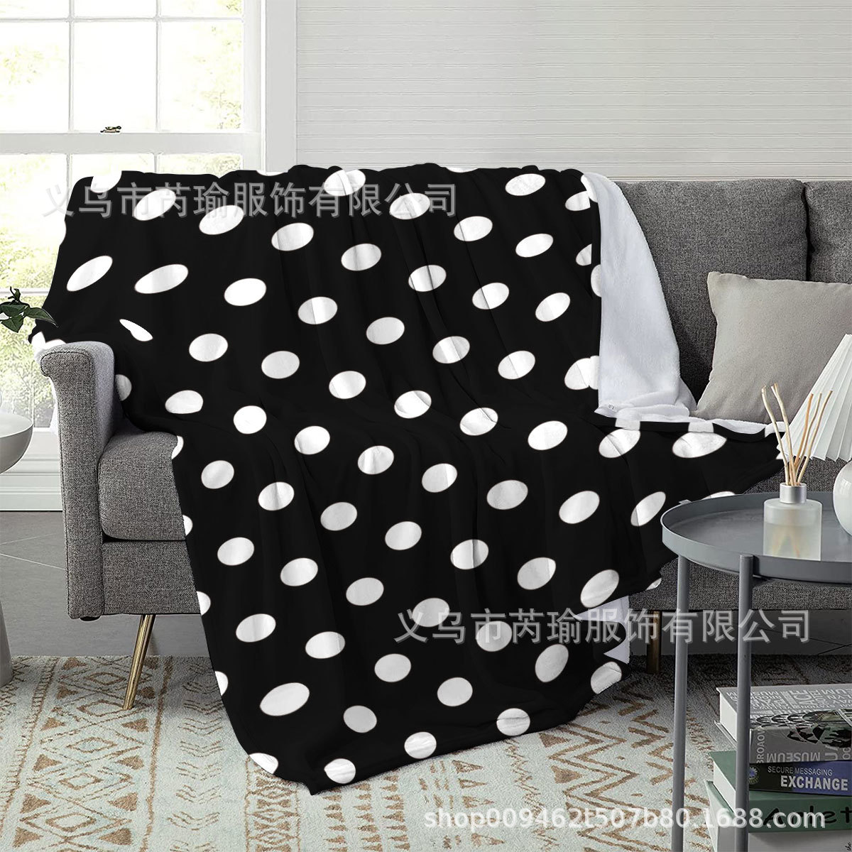 新款黑白圆点毛毯四季通用床单办公室午睡小毯子保暖多功能盖毯