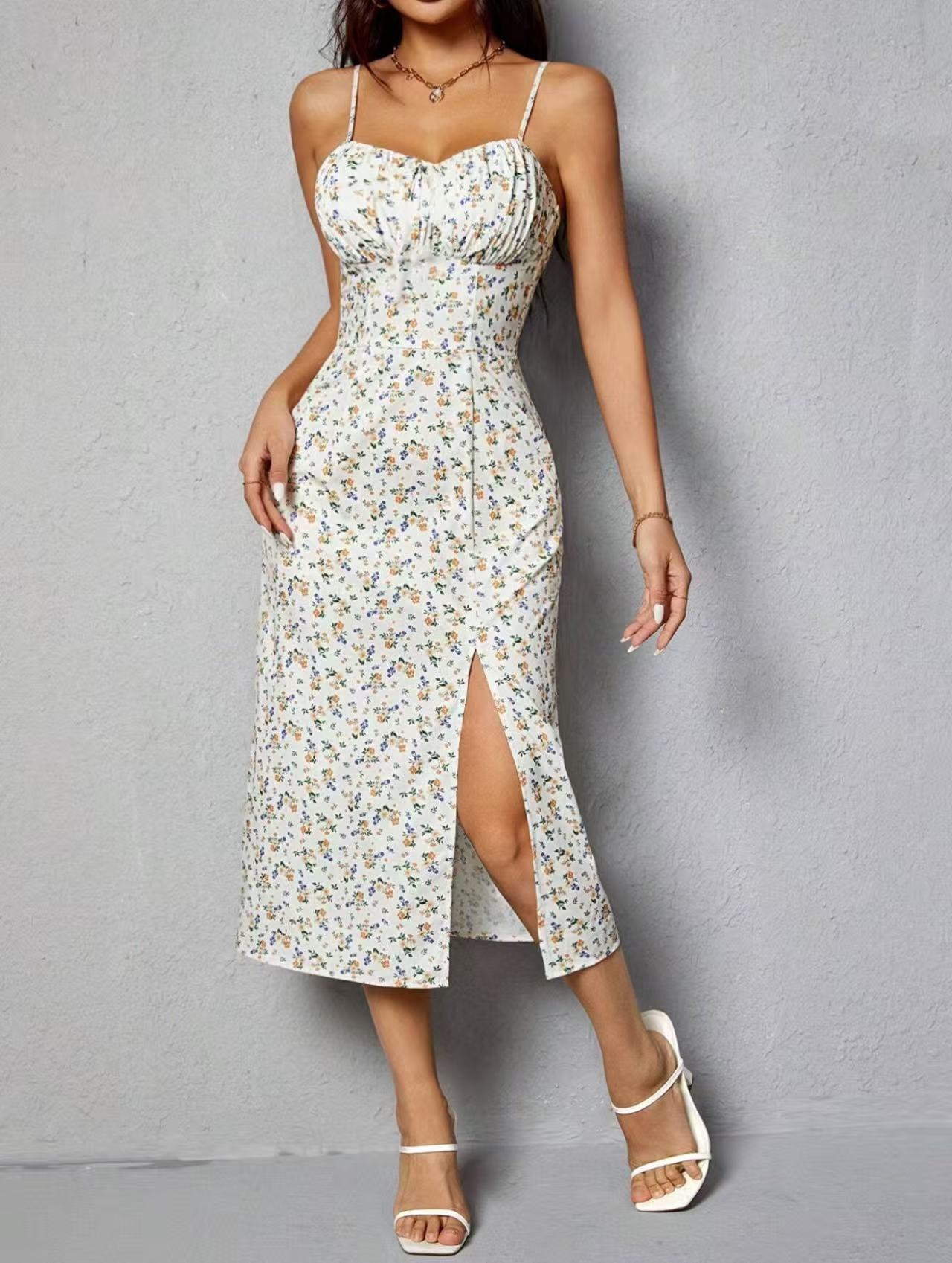 清仓特价-跨境欧美女装连衣裙春夏季吊带连衣裙优雅风 长裙子低价