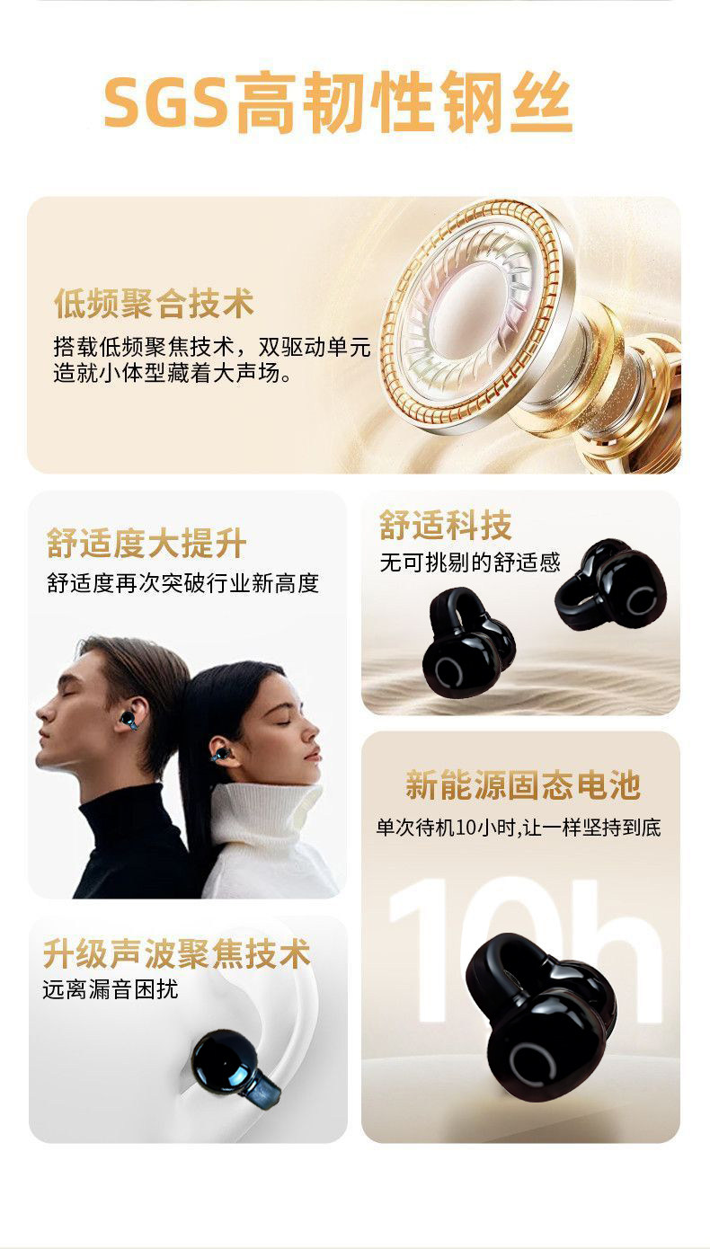 全新夹耳式无线蓝牙耳机不入耳适用全系列手机通用超长续航运动款