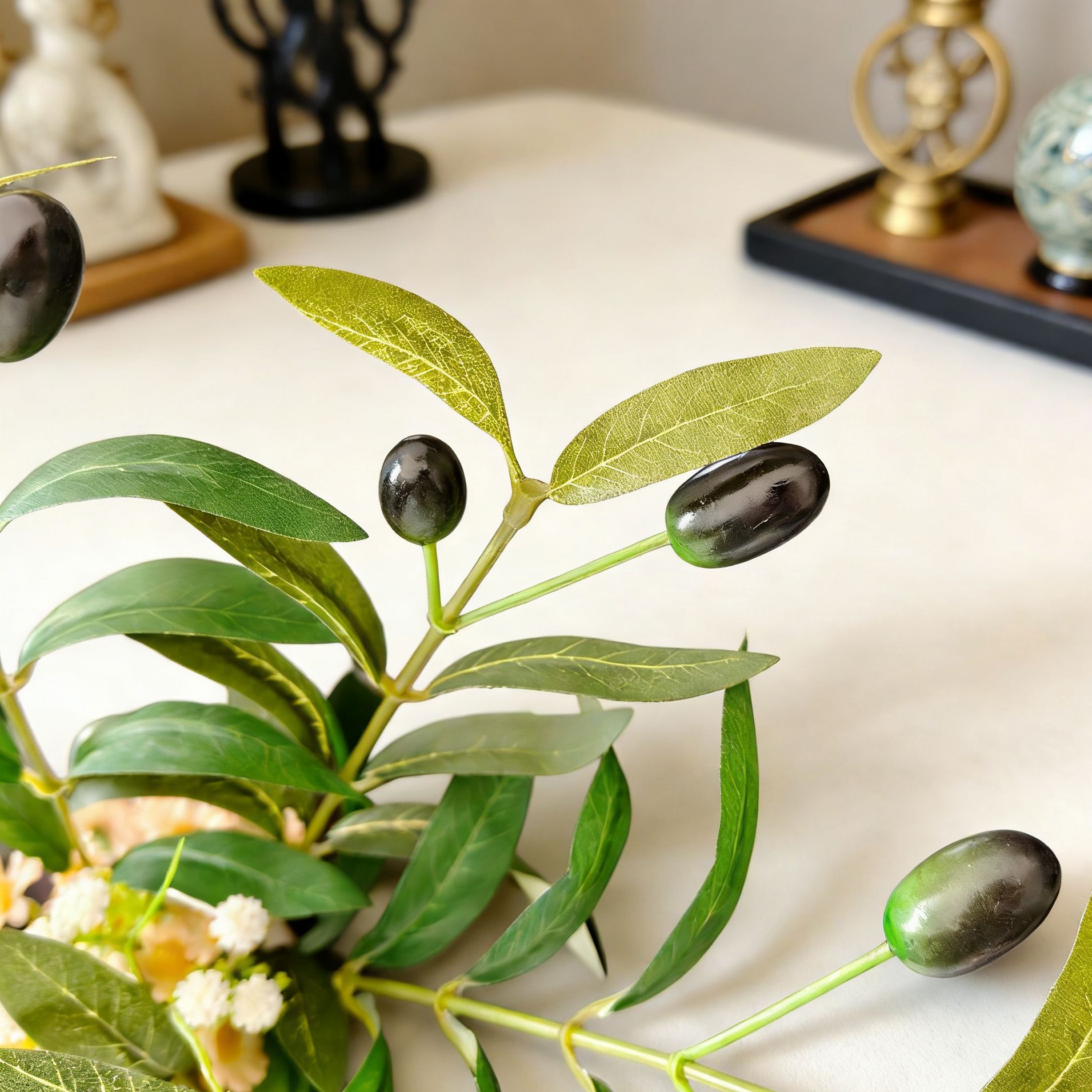 仿真橄榄树枝金钱叶树盆栽家居办公室绿植摆放装饰橄榄树仿真花
