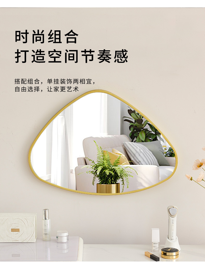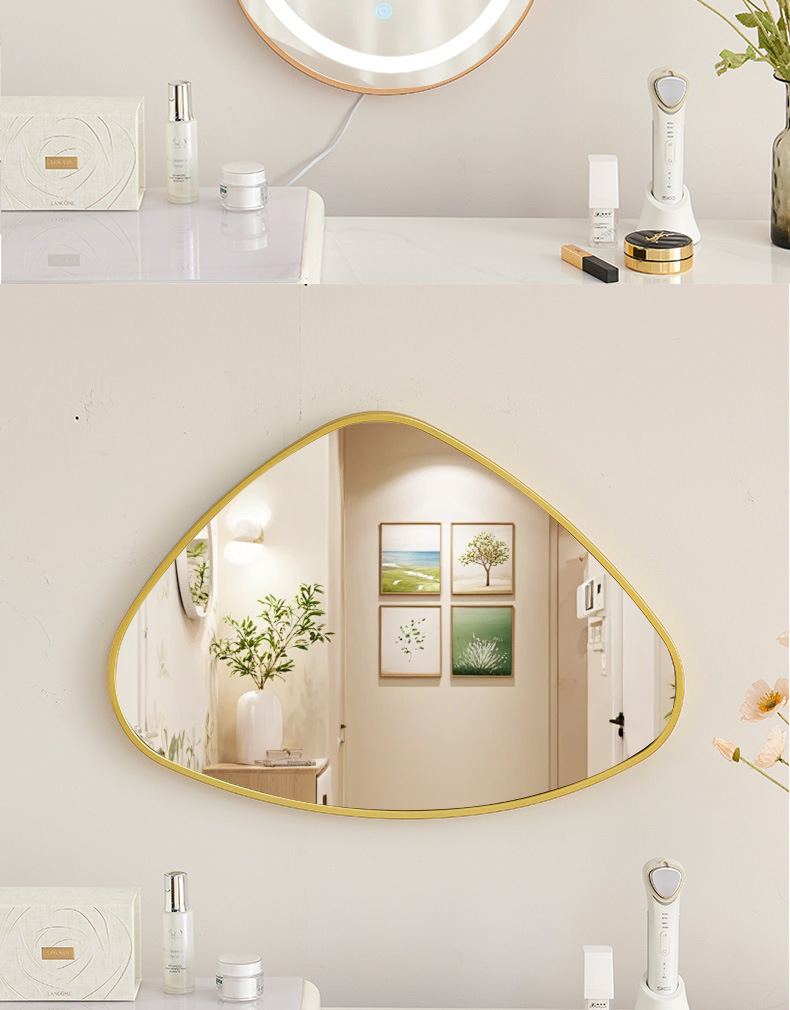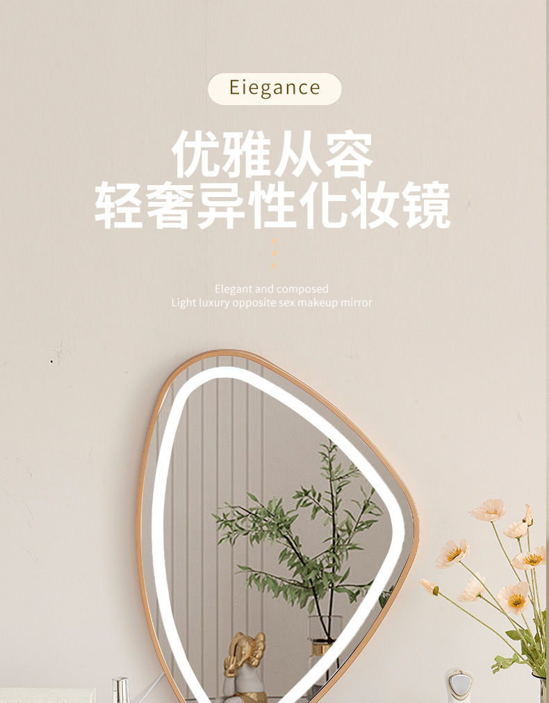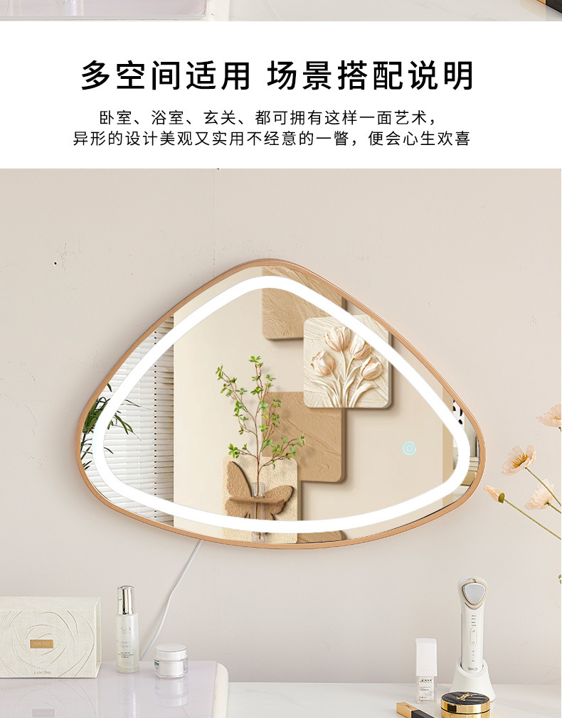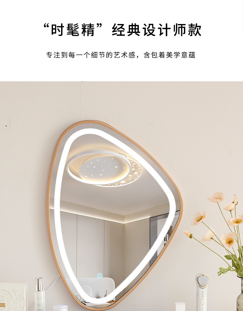 网红梳妆镜卧室不规则化妆镜子桌面浴室异型悬挂带灯镜卫浴镜子