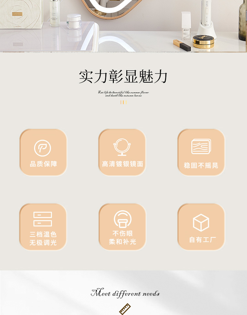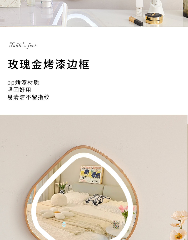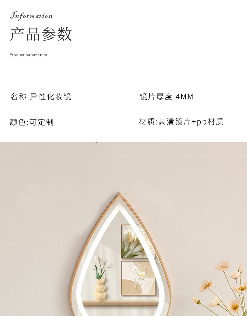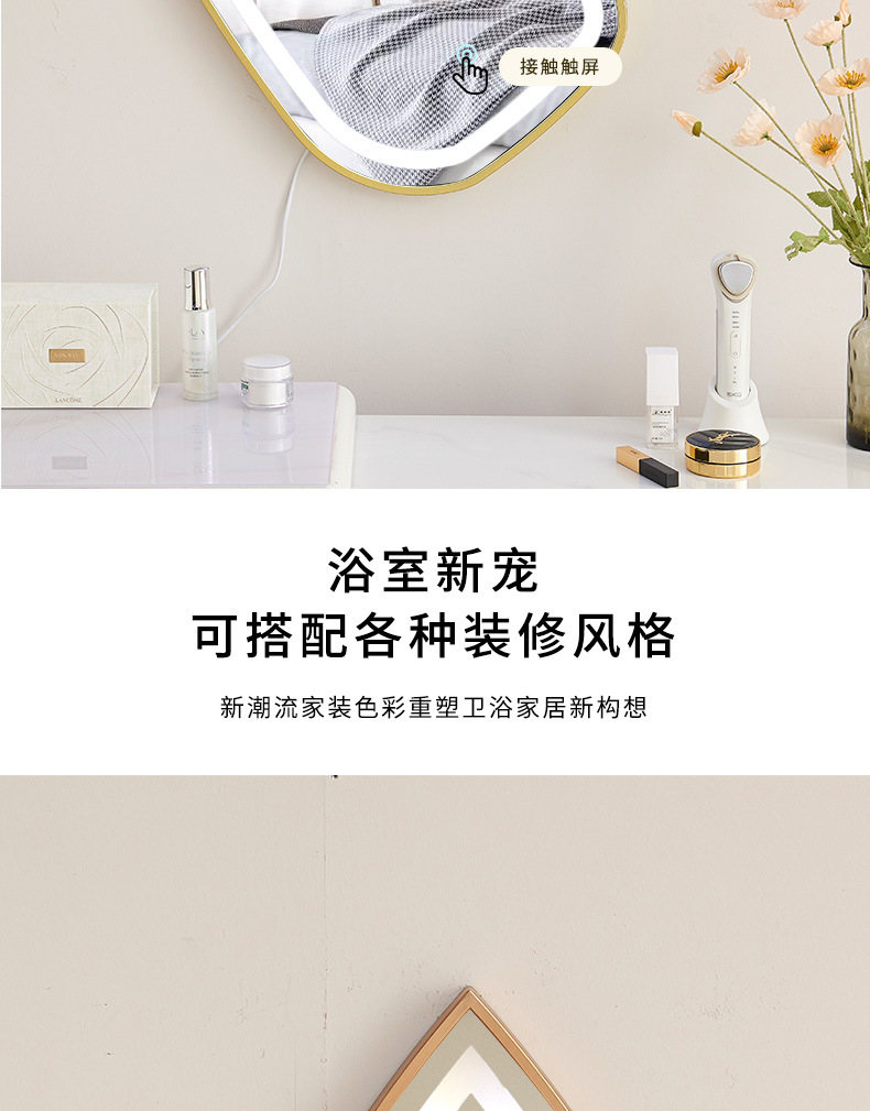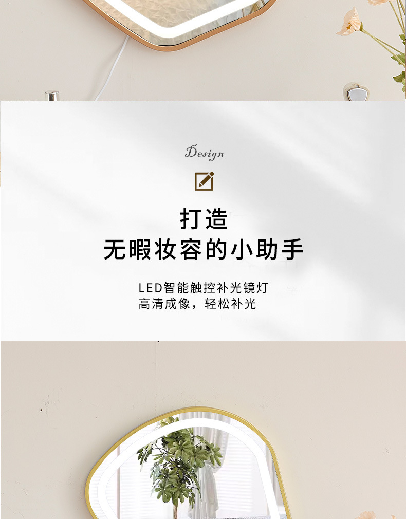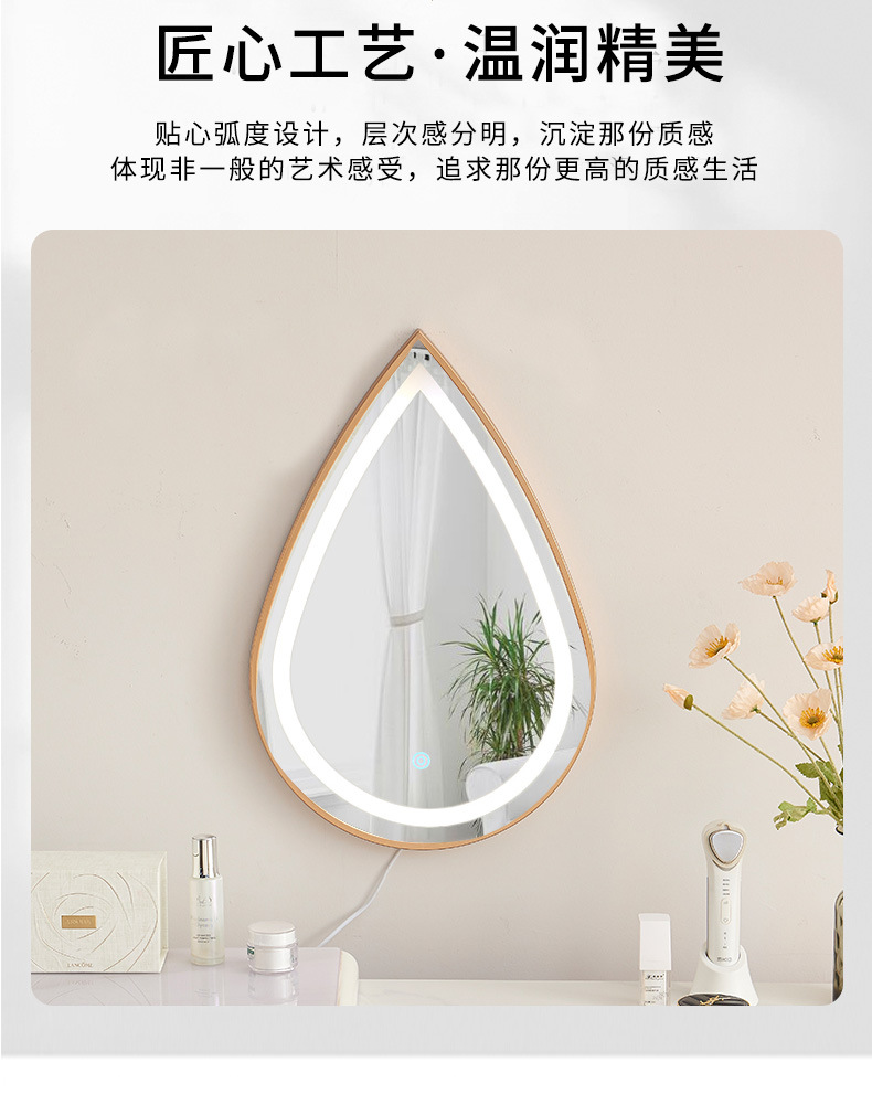 网红梳妆镜卧室不规则化妆镜子桌面浴室异型悬挂带灯镜卫浴镜子