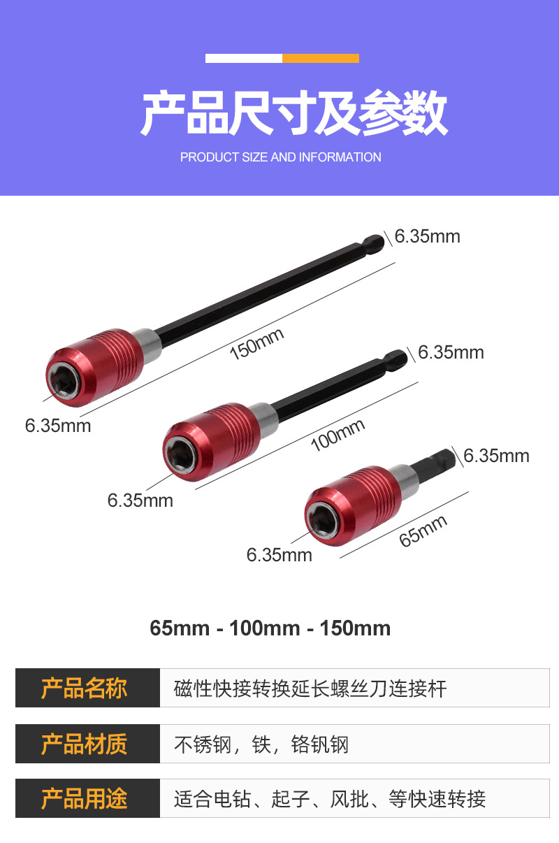 六角柄快脱自锁接杆加长杆电钻起子加长转接杆磁性螺丝刀延长杆