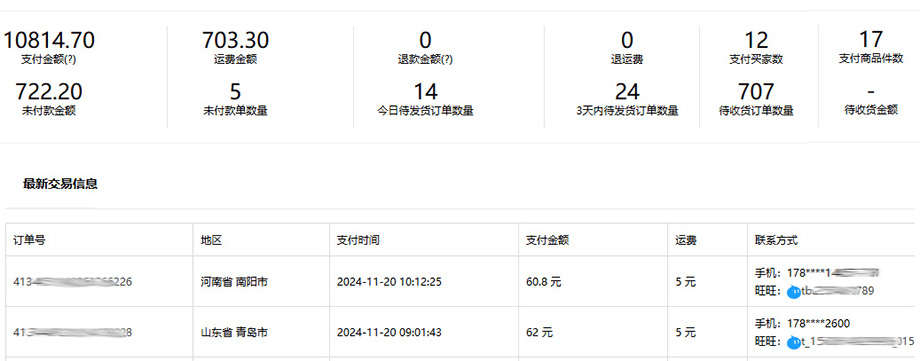 在 1688 平台运营店铺,卖家们常常面临诸多棘手问题。流量虽有,但转化不佳;客户满意度低,退货退款频繁;推广投入大,回报却不尽人意。这些难题如同重重障碍,阻碍着店铺的发展。而 1688 【数据统计_利润分析】中的【交易分析】功能,恰似一位及时雨般的救星,为卖家破解这些运营困境提供了有力支持。 交易分析是对店铺交易活动的全方位深度剖析。它将复杂多样的交易数据整合起来,通过专业的分析方法,为卖家呈现出业务的真实面貌。从订单数据中,卖家能挖掘出客户的购买偏好和行为模式。 交易概括功能让卖家迅速把握交易核心。简洁直观的数据展示,使卖家能够快速了解店铺的总销售额、订单数量、客单价等关键指标。这有助于卖家从宏观层面审视店铺运营状况,及时发现问题并调整经营策略。