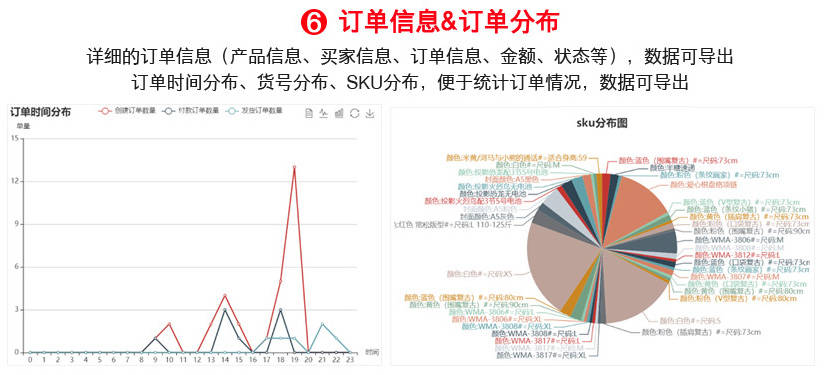 3. 商品表现:通过货号/SKU分布图识别热销商品 4. 退款分析:发现服务短板,持续优化客户体验
