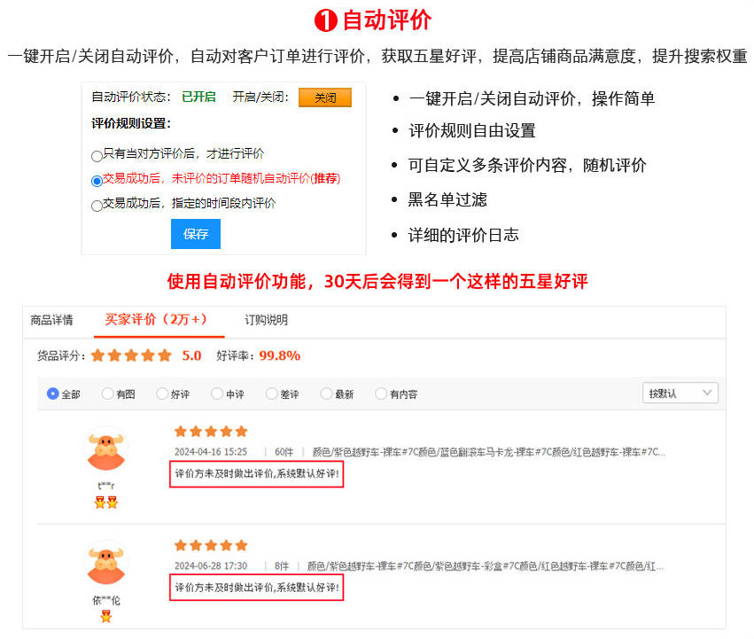 1688自动评价系统彻底解决了店铺评价管理的痛点。它能自动完成交易后的评价工作,按照预设模板为每笔订单留下五星好评。这个功能特别适合新品推广期,能快速积累初始评价,打破零评价的尴尬局面。对于订单量大的商家来说,更是节省了大量人工操作时间。