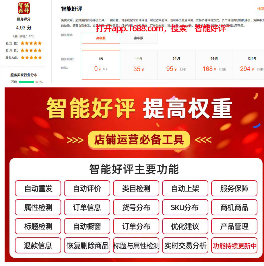 免费试用,轻松管理评价【智能好评】推出 7 天免费试用福利!无需付费,操作简单,能自动提醒评价期限、一键发起好评,助你不错过任何默认五星好评。