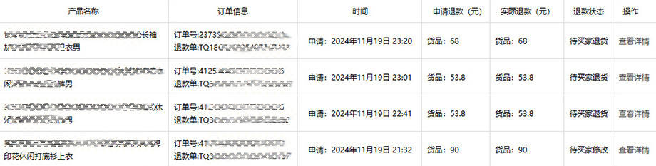 - 退款订单深度解读:退款并非单纯的 “损失”,通过分析退款订单数据,卖家能精准了解客户退款原因 —— 是产品质量问题、尺寸不符,还是服务体验不佳?基于这些反馈,针对性改进产品与服务,从根源上减少退款率,提升客户复购意愿。