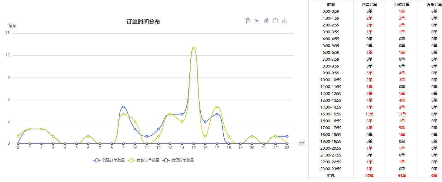 - 订单分布:精准统计每个时间段(如早高峰、晚高峰、工作日、节假日)的订单量变化规律。卖家可根据这一数据合理安排客服排班、调整仓库发货节奏,避免因人力 / 运力不足导致的订单延误,提升整体运营效率。