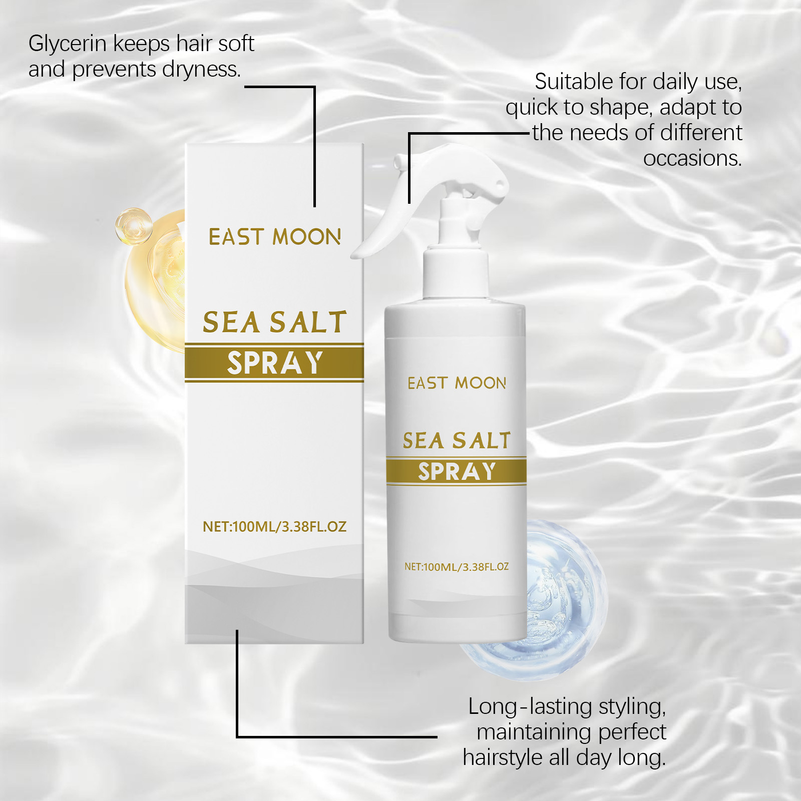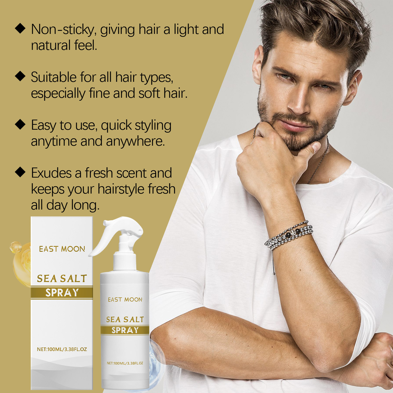 EAST MOON男士海盐美发定型喷雾 蓬松男士长效定型打造自然造型
