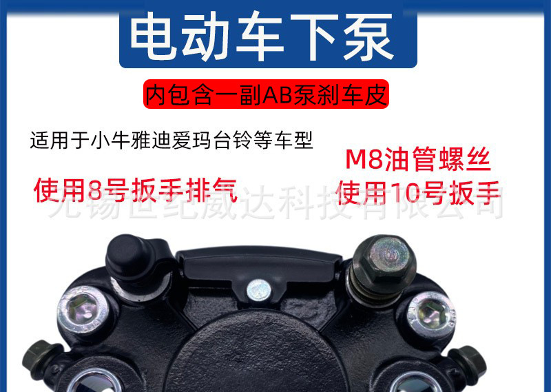 电动车刹车小牛N1s后淑女碟刹下泵台铃苍穹下泵8mm油管孔卡钳制动